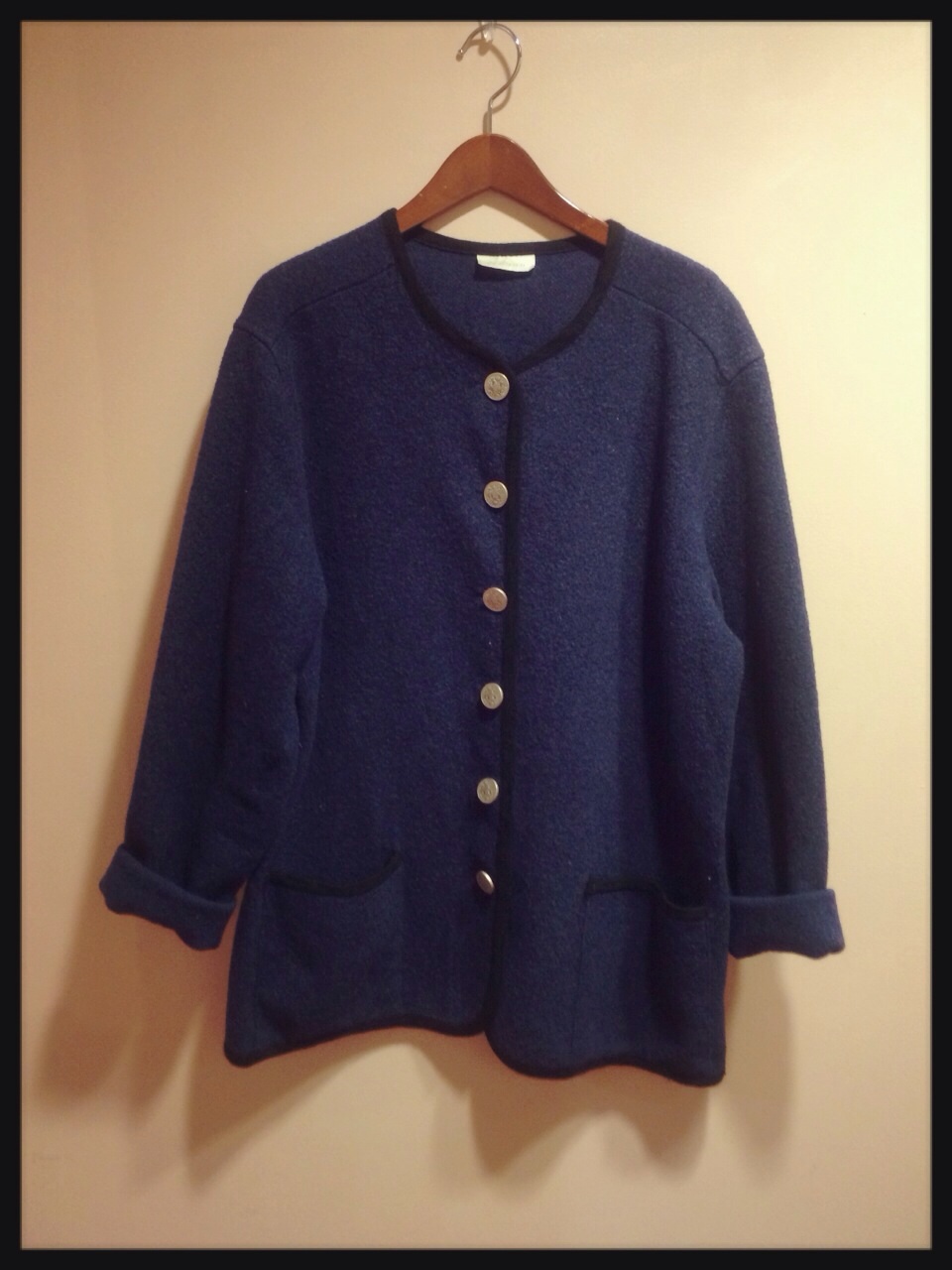 ネイビー大きめボタンのノーカラージャケット◎ハイネックやブラウスの襟を出してもGOOD(^ ^)♪