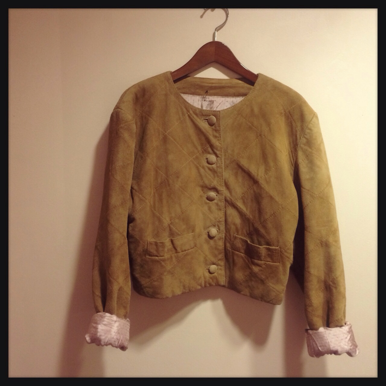 丸いボタンとキルティングのスウェードが可愛らしいジャケット(^ ^)♪