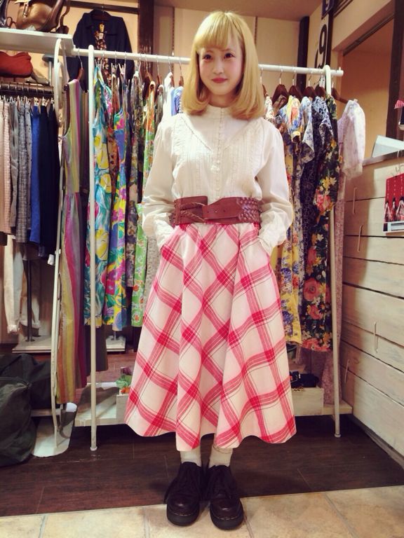赤チェックスカート!