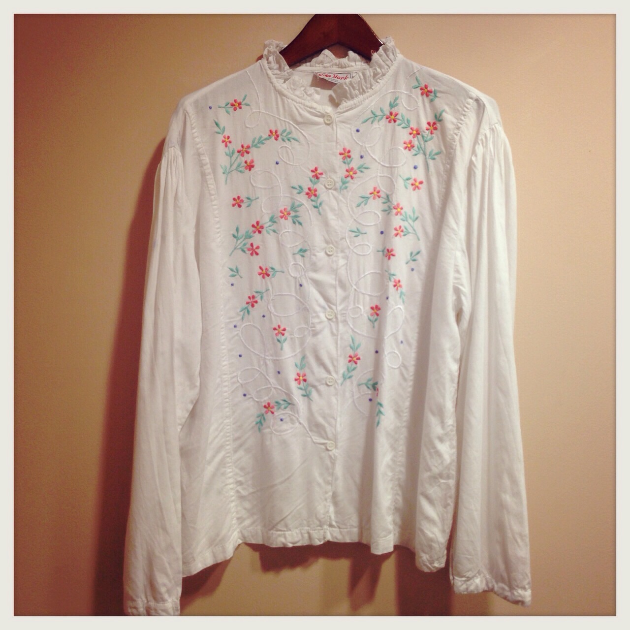 派手すぎない刺繍とつんっとした襟でかわいくなりすぎ防止!