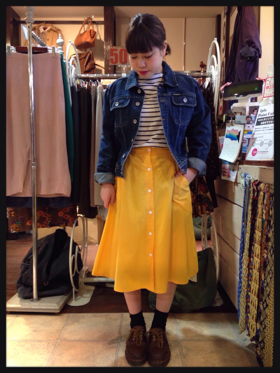 少し明るめなオレンジのスカートはデザインがシンプルでgood!!