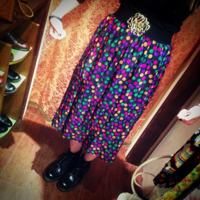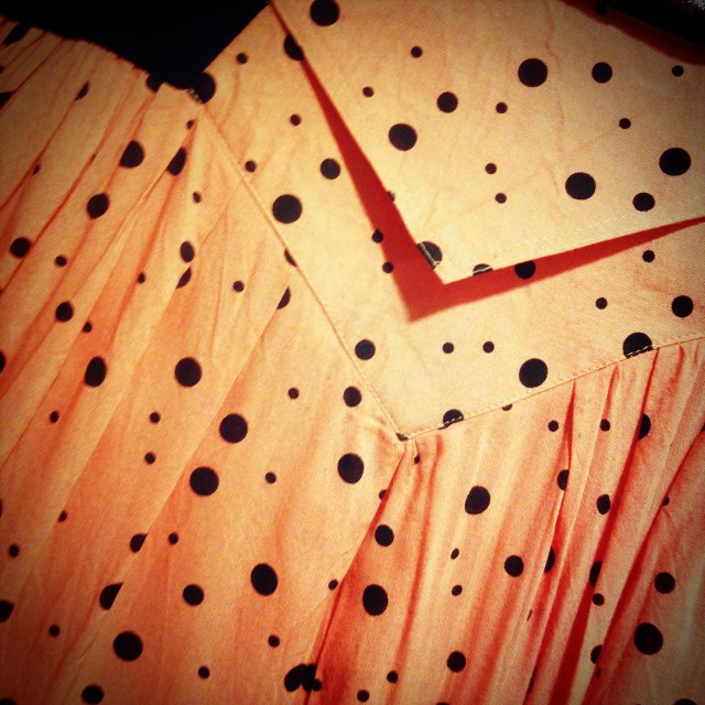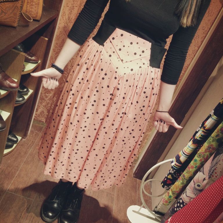 大きさの違う水玉がちらほら 、おれんじ色のスカート!ウエストもゴムで楽チン~^ - ^