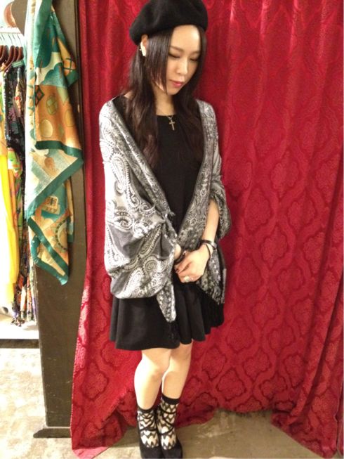 真っ黒なコーディネートにグレー色のストールがはえますよね*・゜゚・*:.。..。.:*・'(*゚▽゚*)'・*:.。. .。.:*・゜゚・*