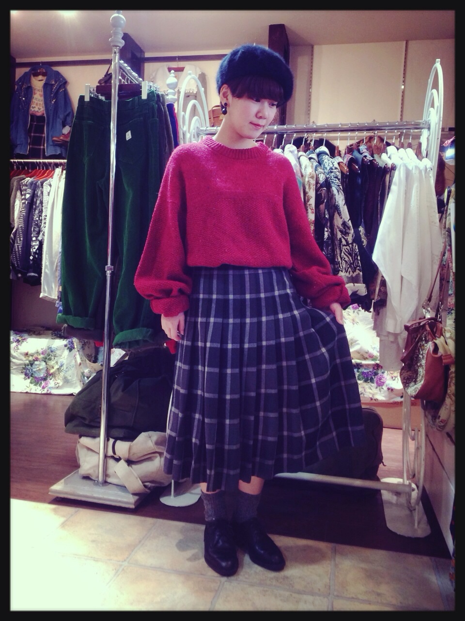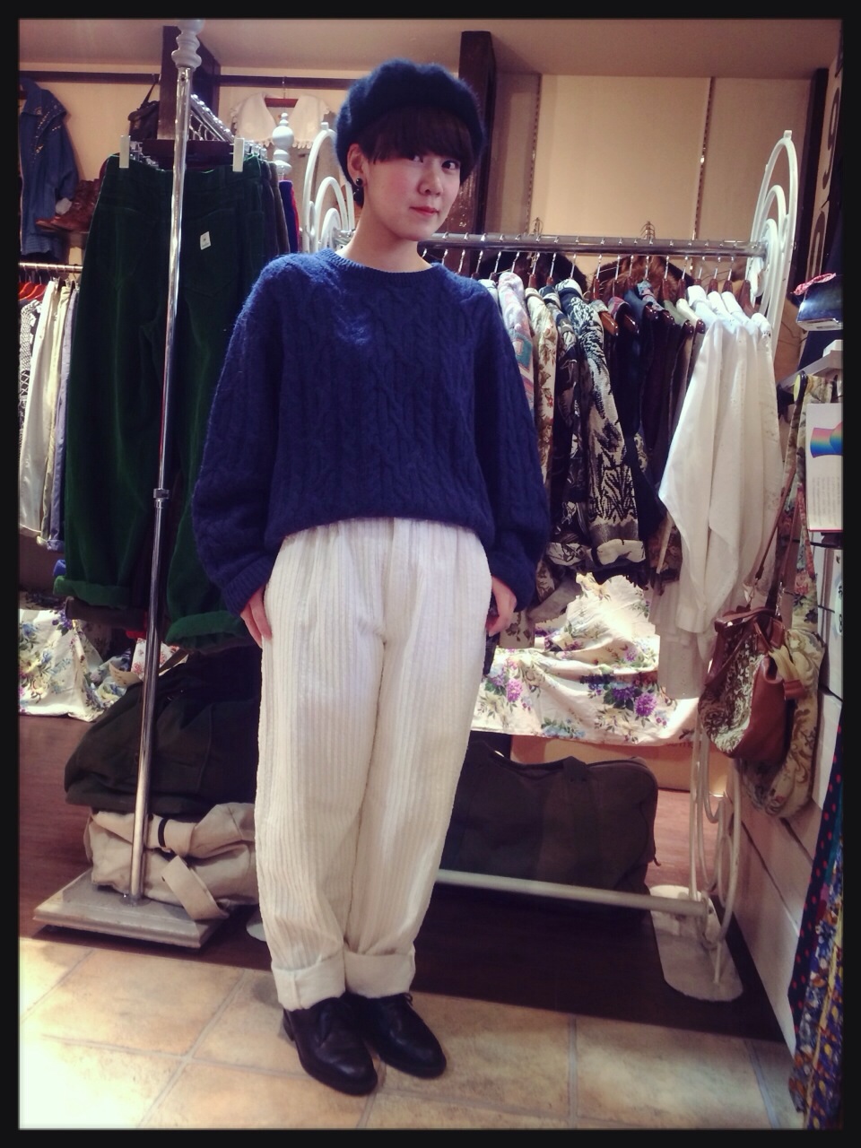 柄ものスカート、パンツにも抜群に合わせやすい無地ニットは一枚持ってると着回しがききますよ(^-^)♪
