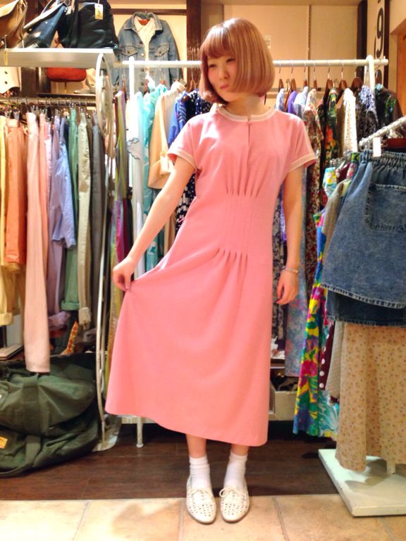 パステルピンクのゆったりワンピース