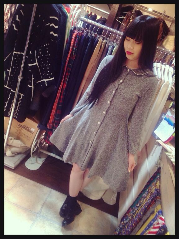 グレー丸襟ワンピース