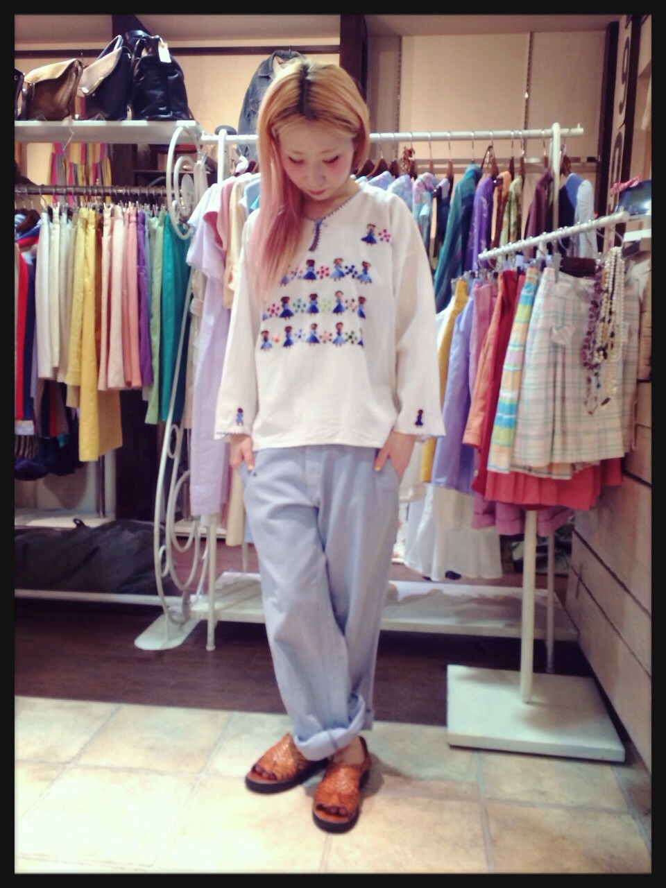 オレンジの刺繍が肩にも入っていて一枚できても、デニムと合わせたりしても可愛いですよ(^_^)◎