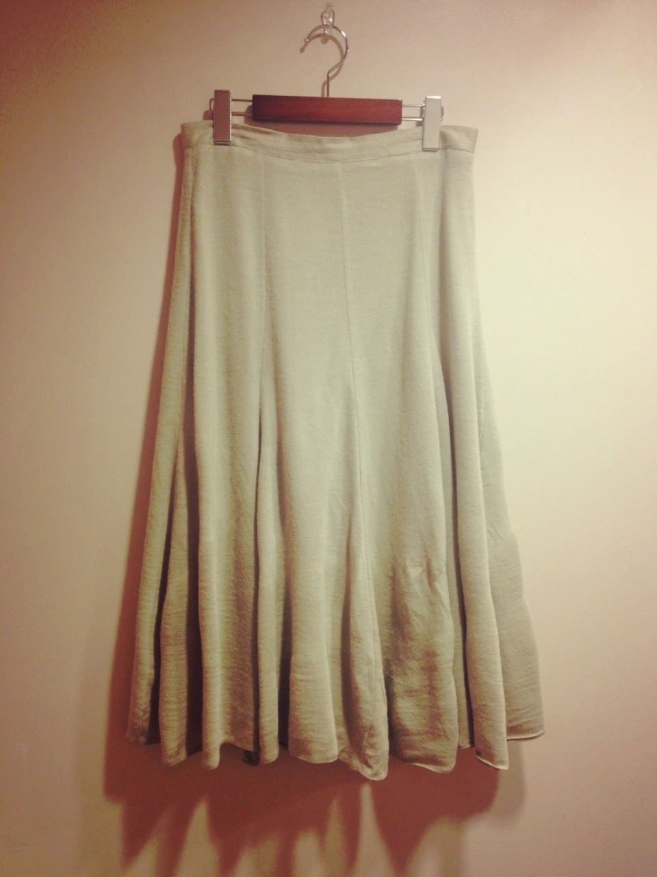 ベージュ色のフレアスカート。