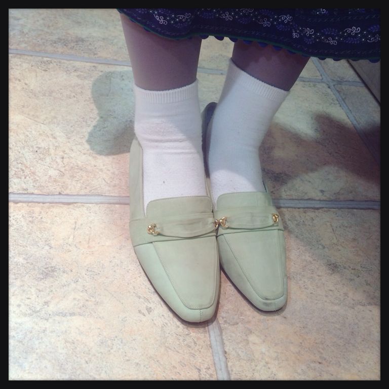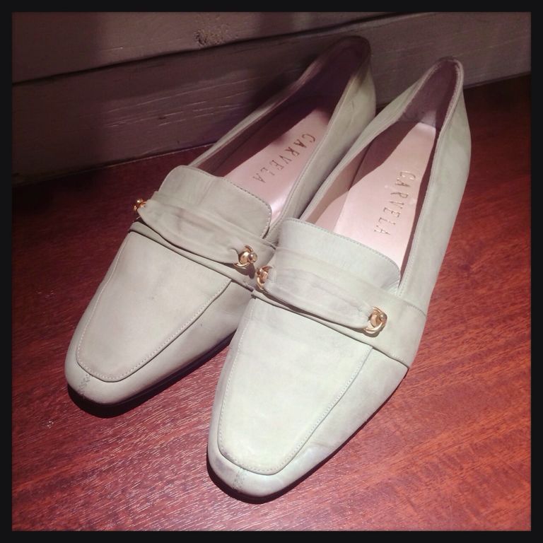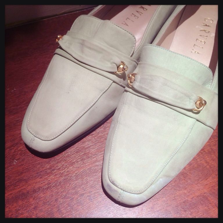 パステルグリーンのフラットシューズ