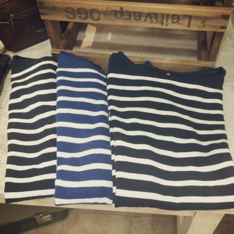 今回インナーとしてたくさん登場したこちらのボーダーTシャツは、ネイビーとブルーの2色ございます(*^_^*)/