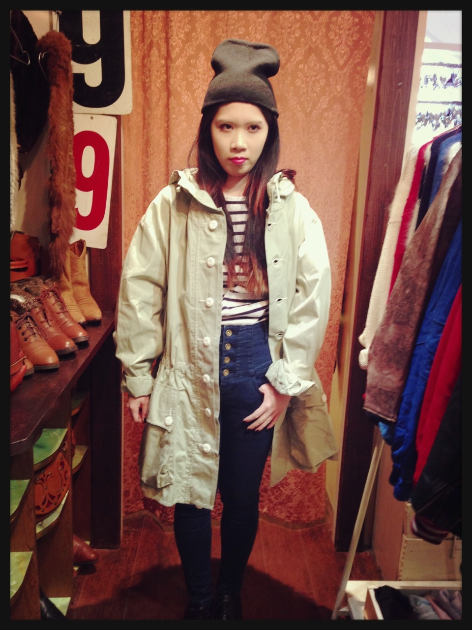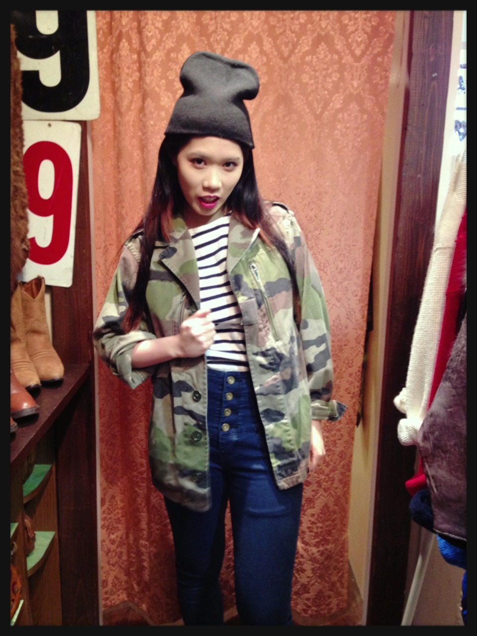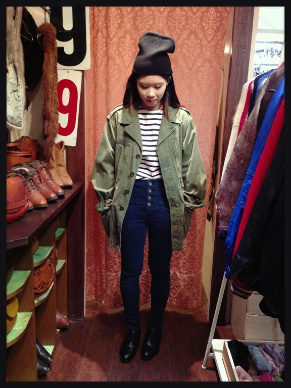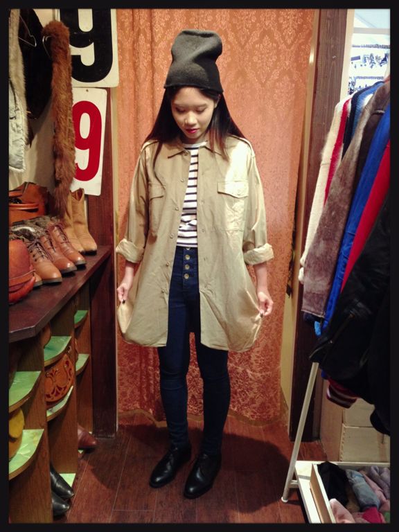 今時期アウターとしてバッチリなミリタリージャケット。こちらもゆったりめなので中にニットやパーカーも合わせられるサイズ感です◎ ¥3570