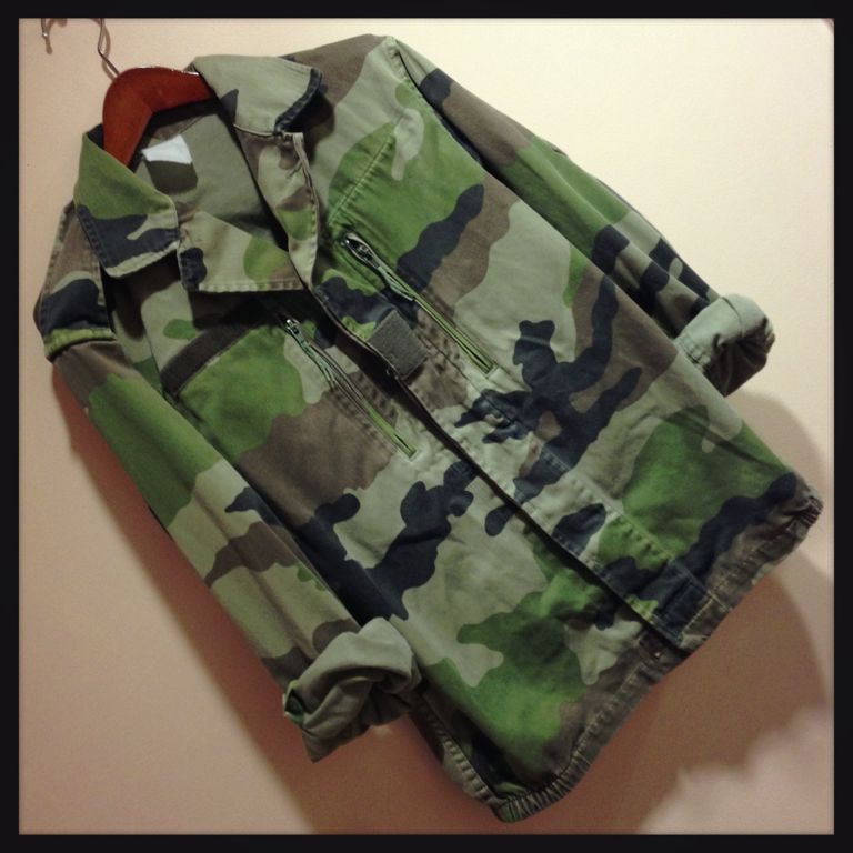 迷彩ジャケットはパンツと合わせるとメンズライクに、スカートと合わせるとカジュアルARMYガールな印象に。¥3990