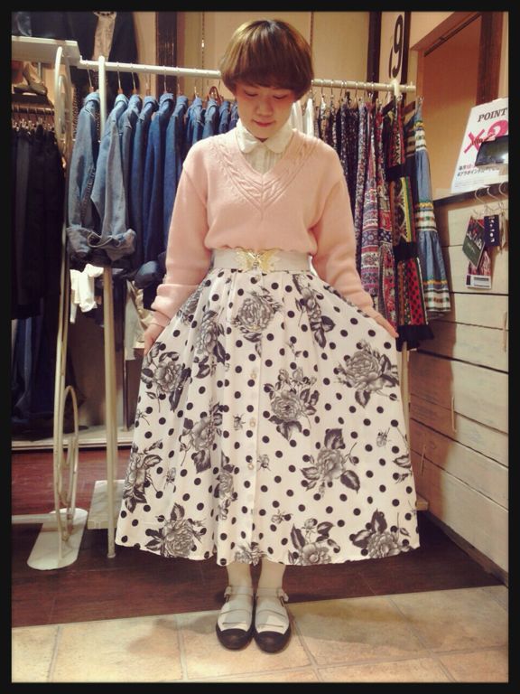お花柄とドット柄の組み合わせ!