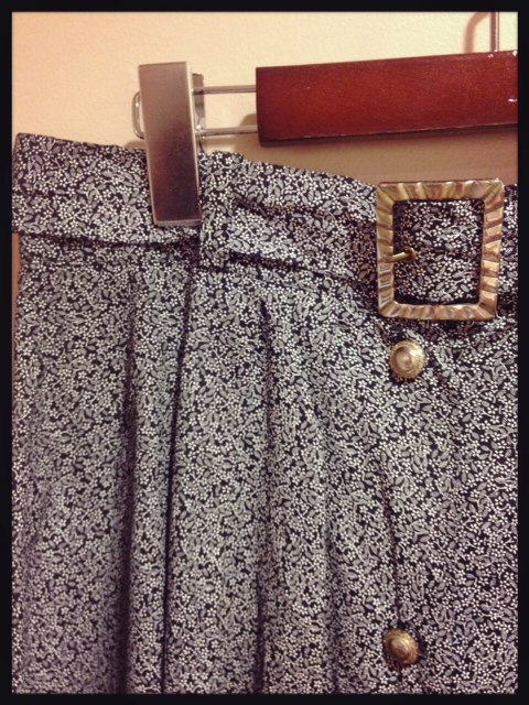 裾の細かいプリントと腰でしばれる
