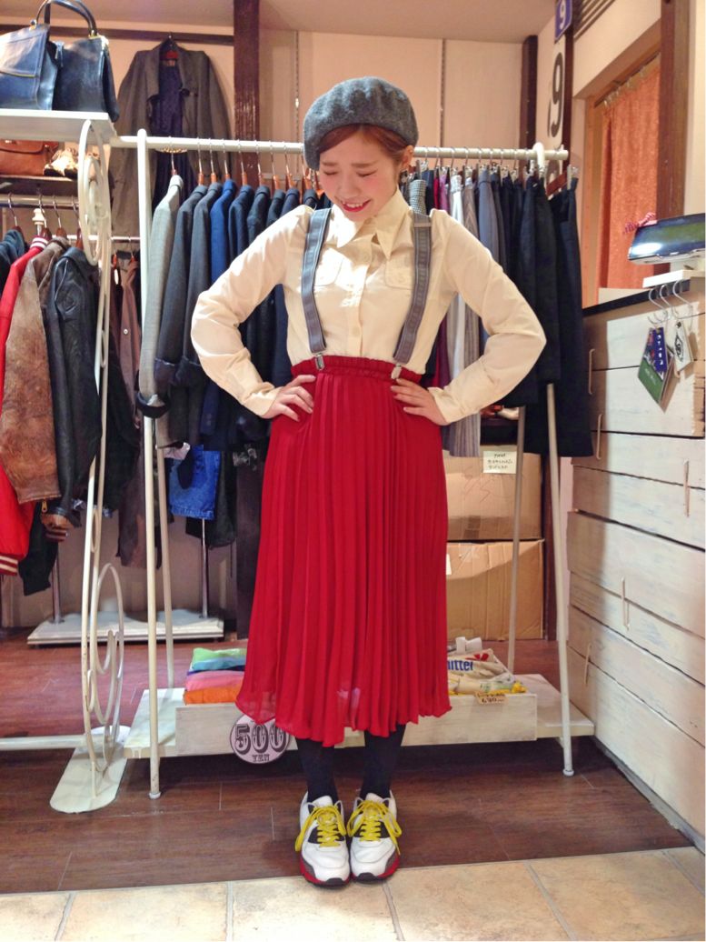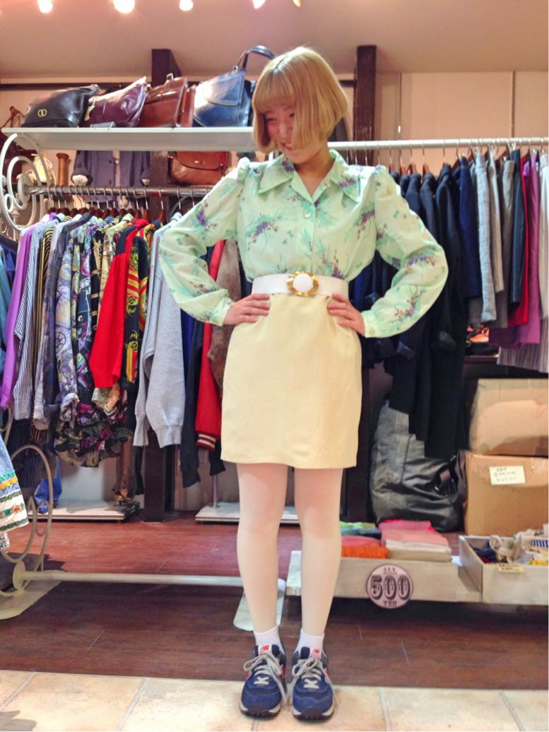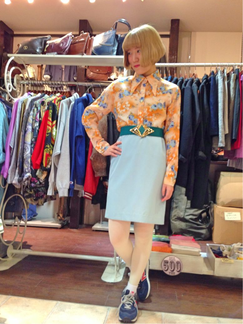 タイトスカートと合わせると思いっきりレトロな印象に(^∇^)(^∇^)