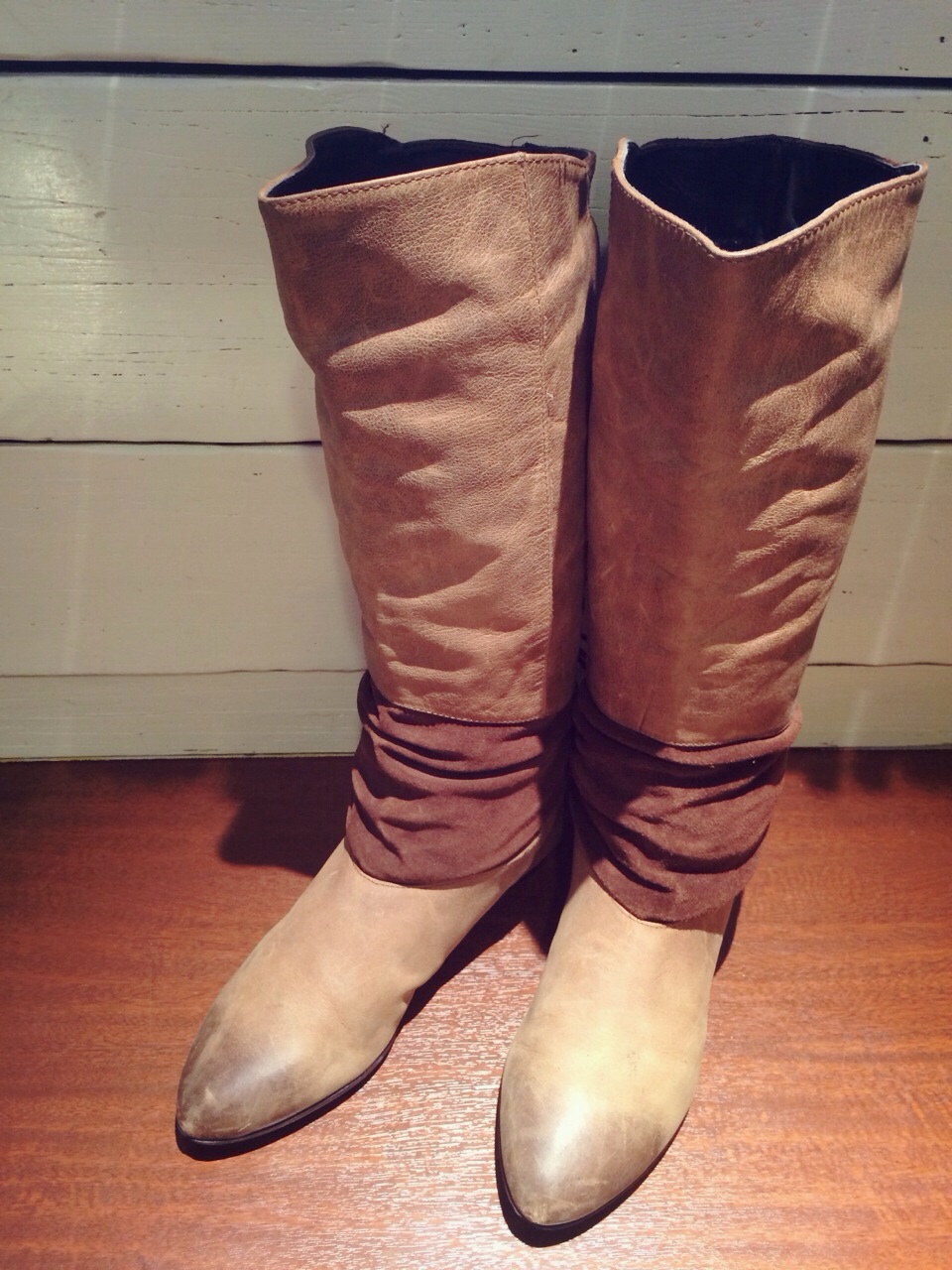 こちらはスウェードの切り替えしタイプ!うしろもくしゅくしゅに革紐と、凝った一足です( ̄ー ̄)