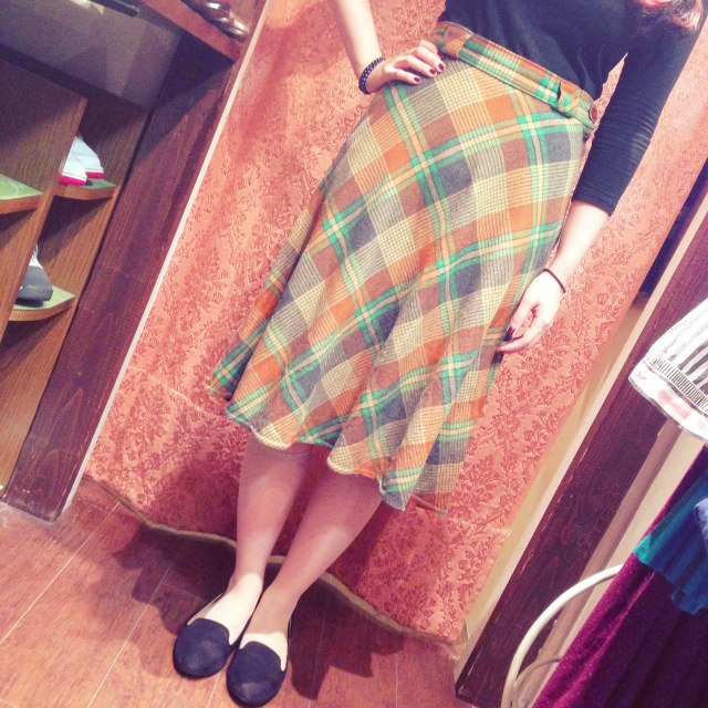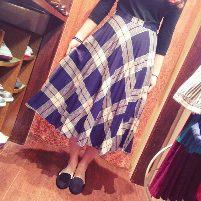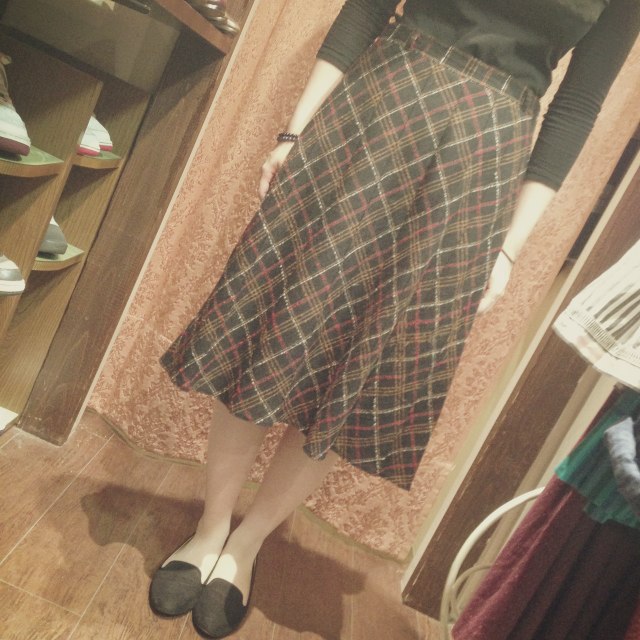 本日は秋らしいチェックロングスカートのご紹介させて頂きます(´・Д・)」