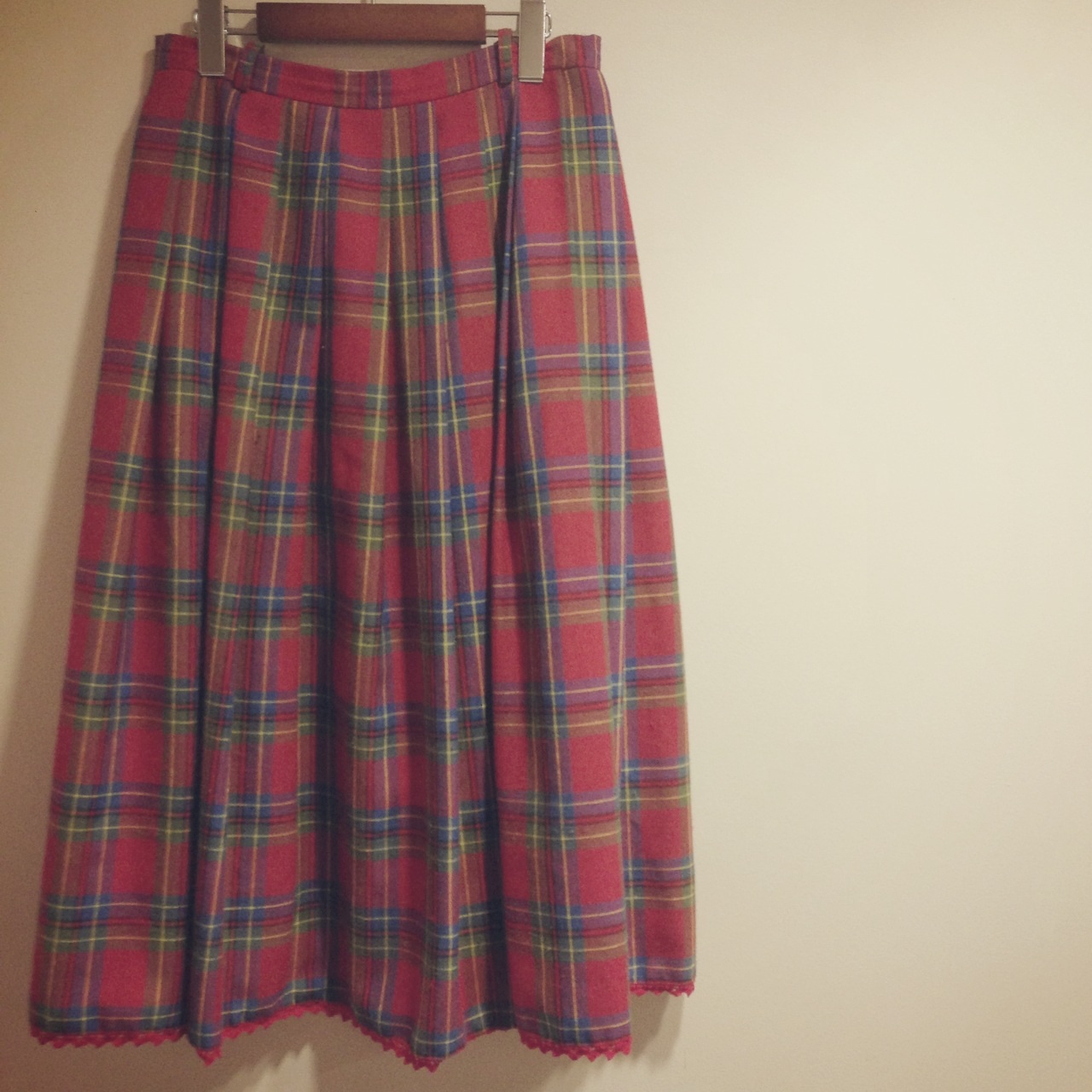 赤と緑のチロルチェック柄。暗めなので落ち着いて着られます◎