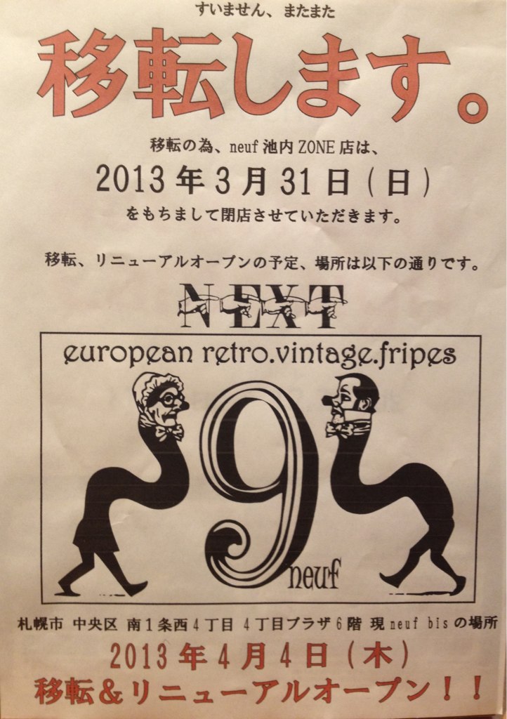 北海道札幌市 4丁目プラザ 6階 ヨーロッパ古着店 neuf(ヌフ)の落書き