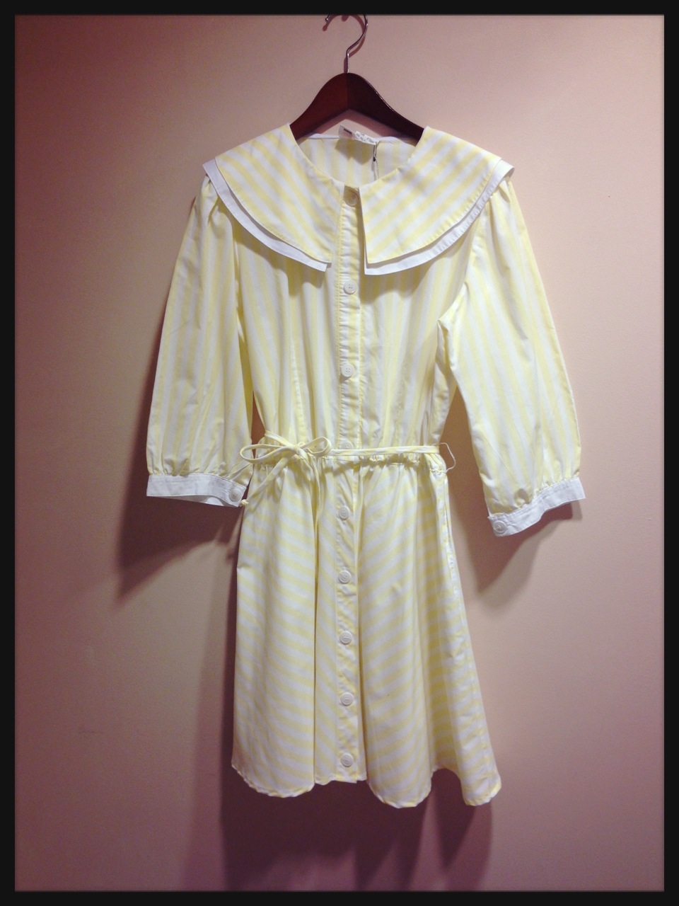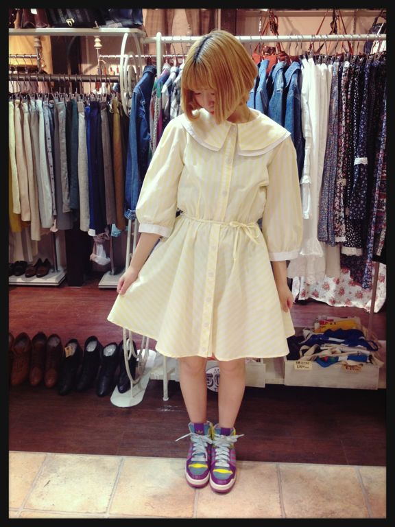 薄黄色のストライプ柄ワンピース