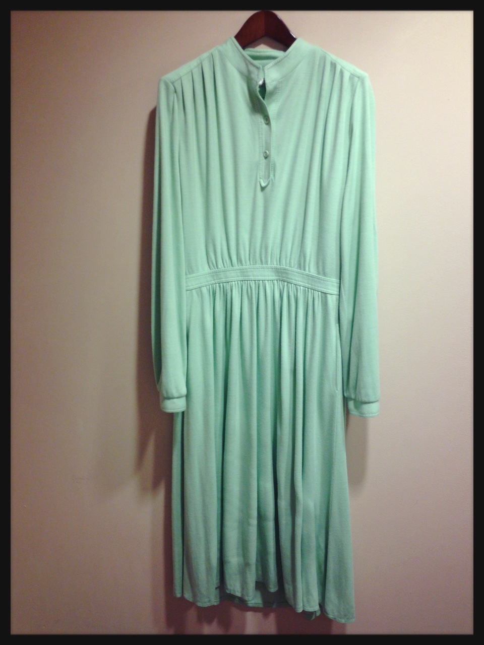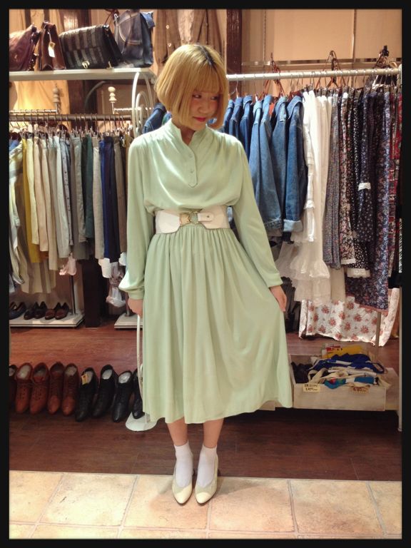 薄いグリーンのワンピース