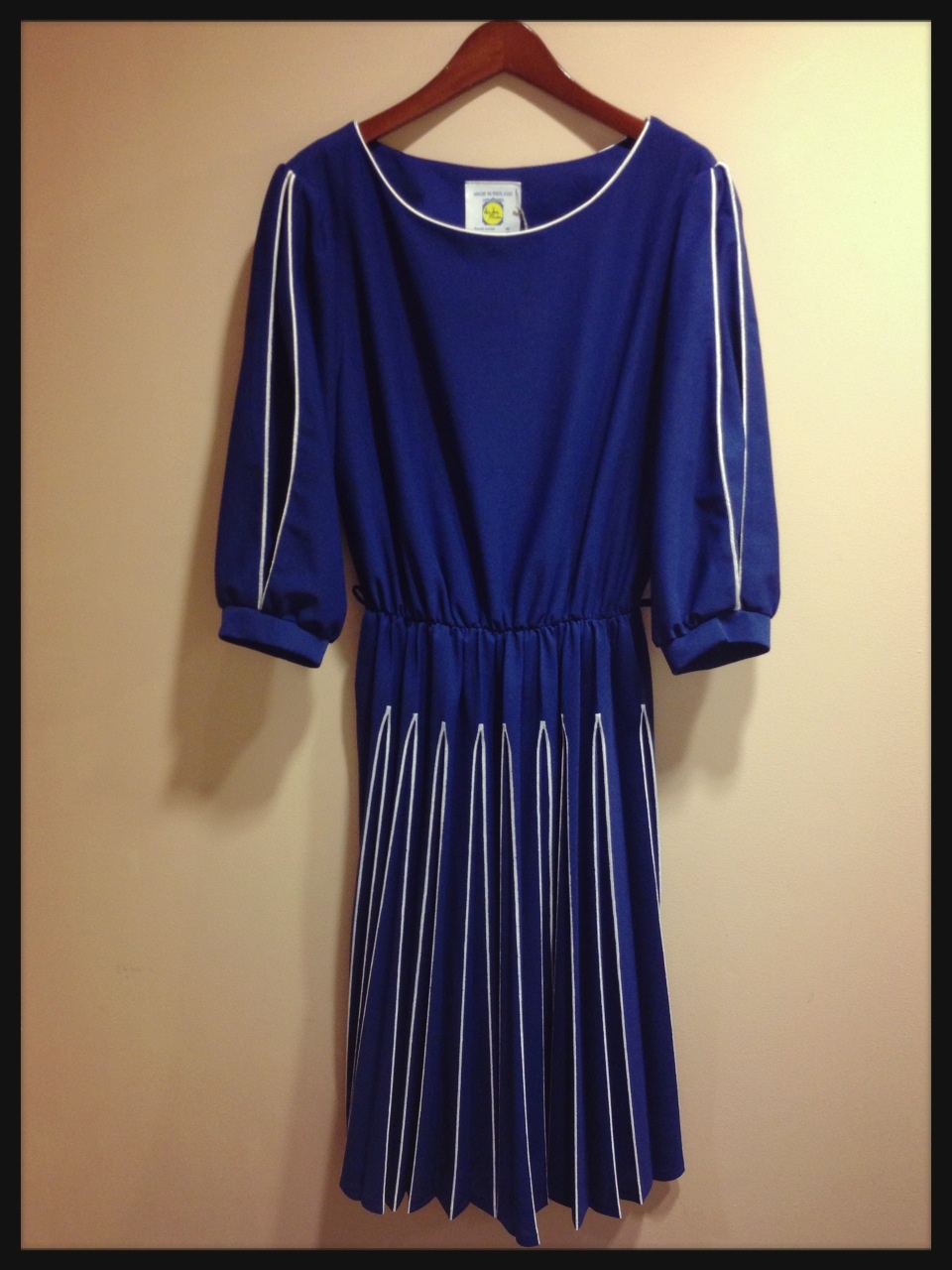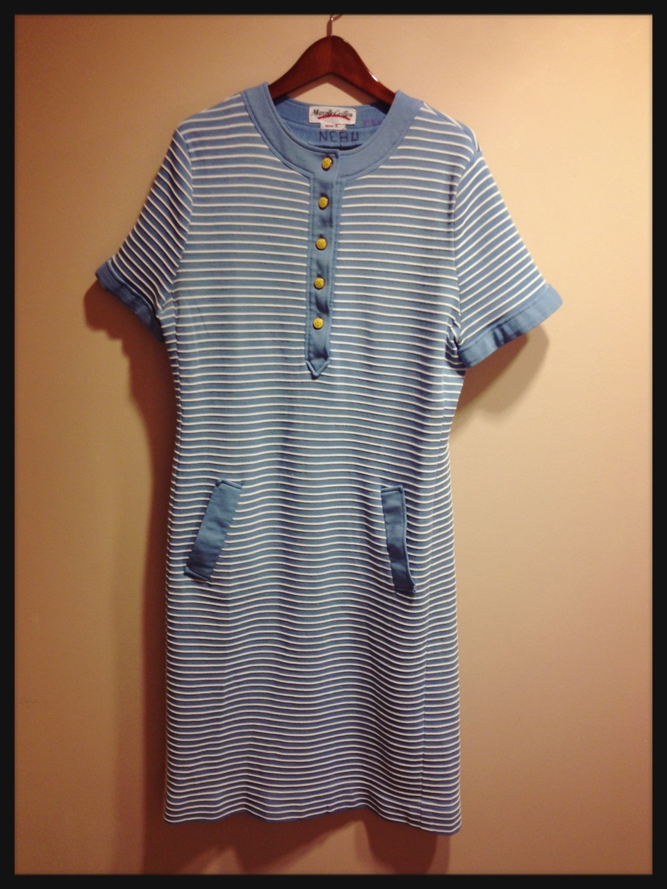 紺色に白のストライプのはっきりと縁取りが素敵なワンピース(o^^o)