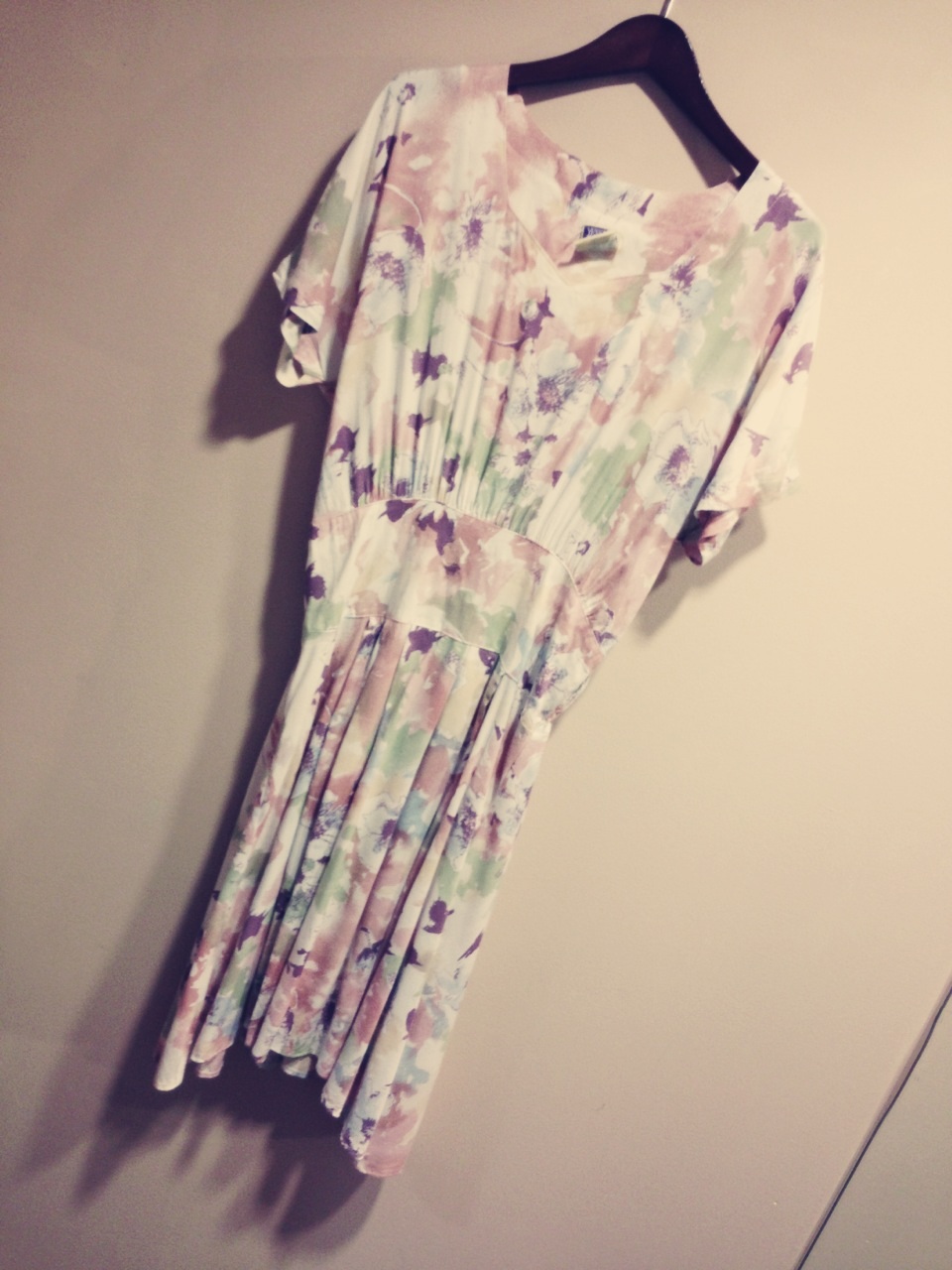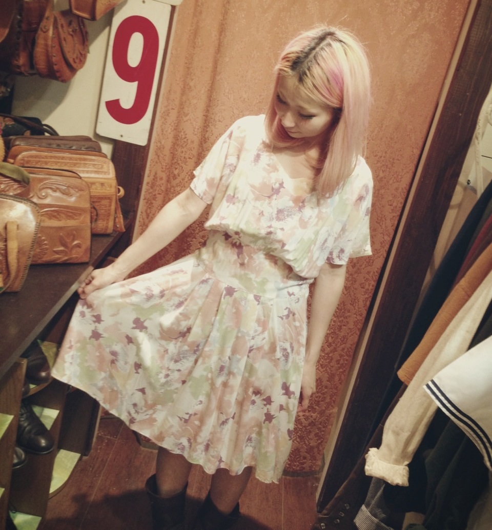 淡いピンクと白が混ざったような花柄のワンピース♡女の子らしい雰囲気が素敵(*^_^*)