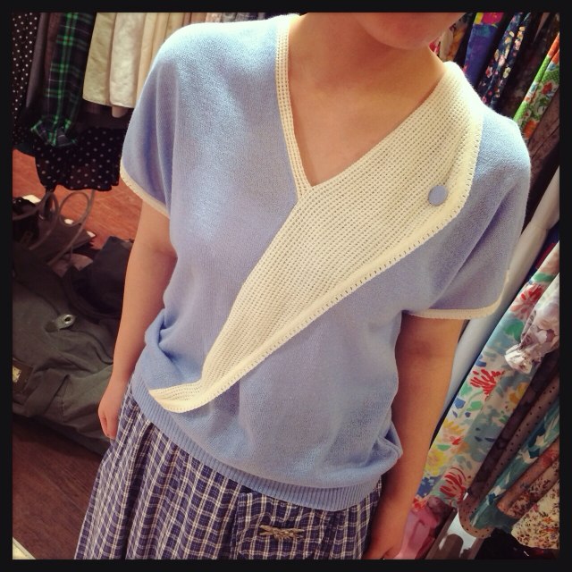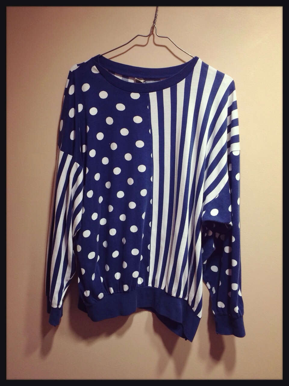 ドットとストライプ柄のスウェット型のロンT!80s風に^_−☆