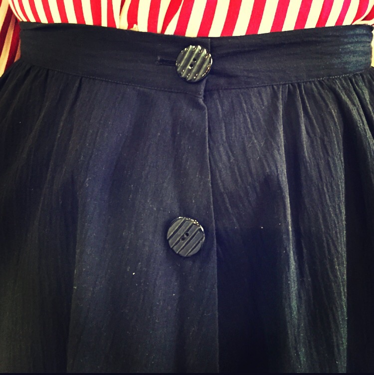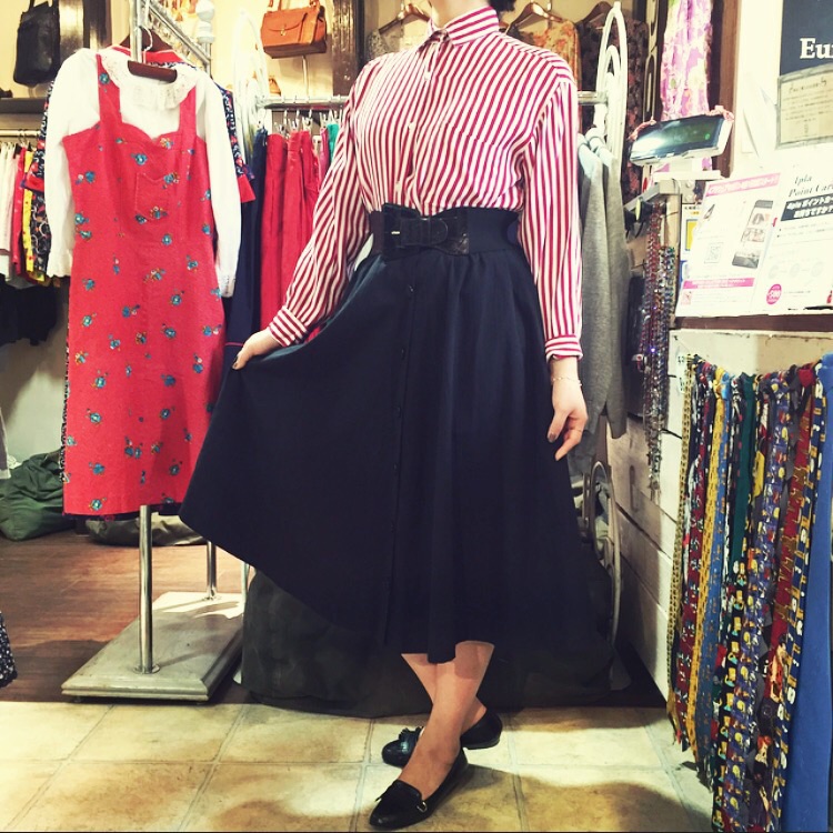 ストライプのシャツや大きめのベルトと合わせてレトロガーリーに^o^