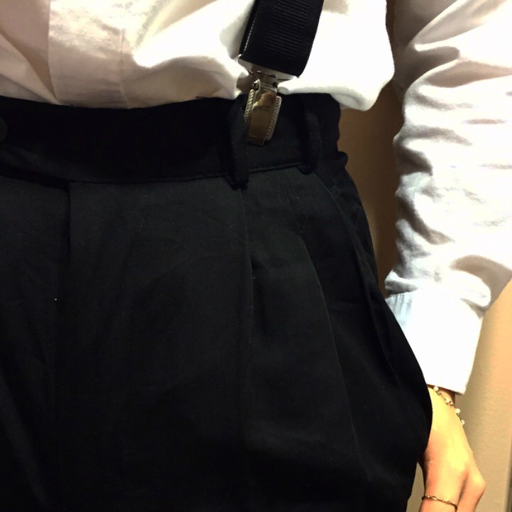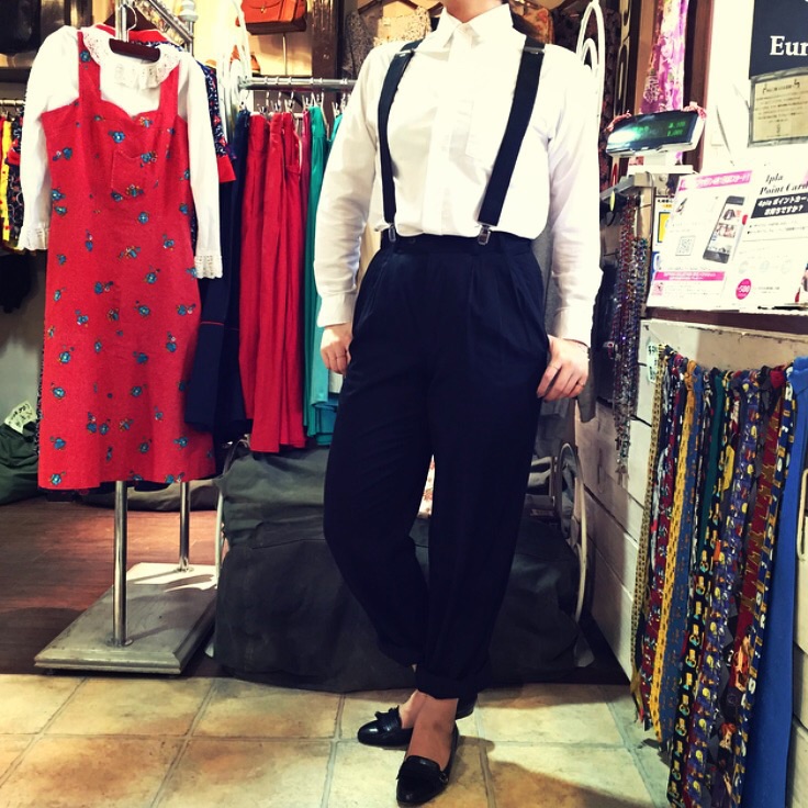 シャツとサスペンダーに合わせてかっちりメンズライクなスタイルに♠︎どんなトップスにも合わせやすいので大活躍しそうです(^O^)