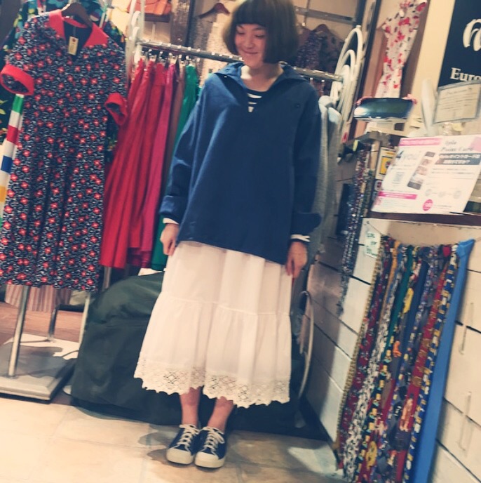 ネイビーのセーラートップスは女の子らしくペチコートで着るのも可愛いです♡長めの丈だとこなれ感が出て素敵。