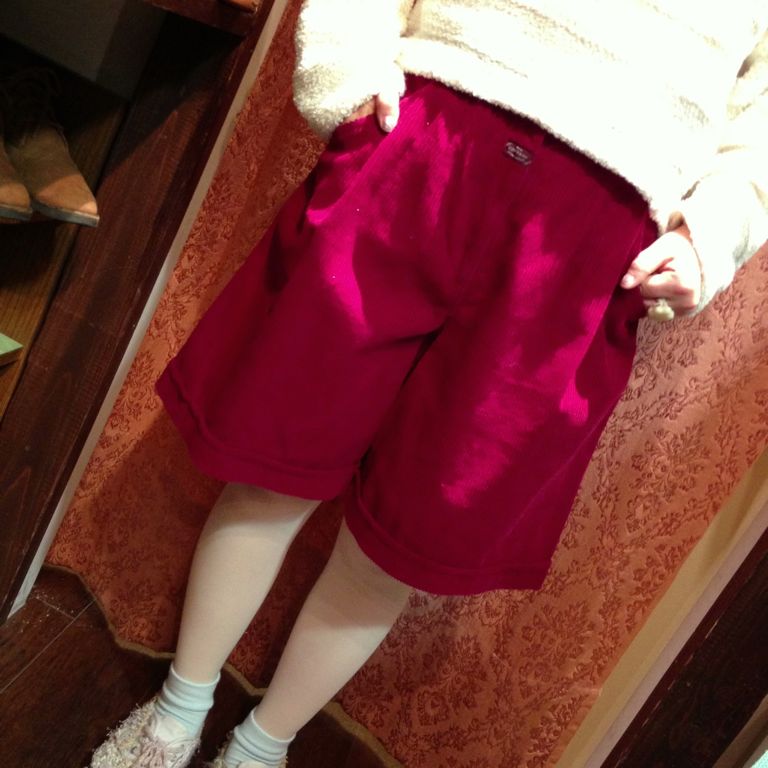 赤紫色のコーデュロイショートパンツ^ - ^