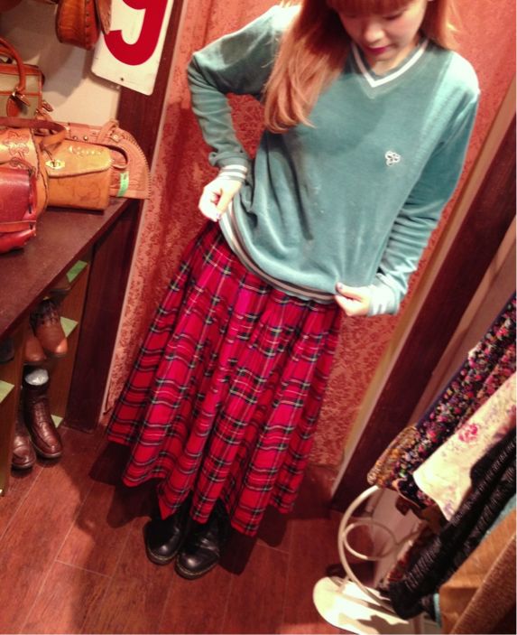 黒×赤の格好良い印象の柄。ハードに着てもカジュアルに合わせても素敵◎