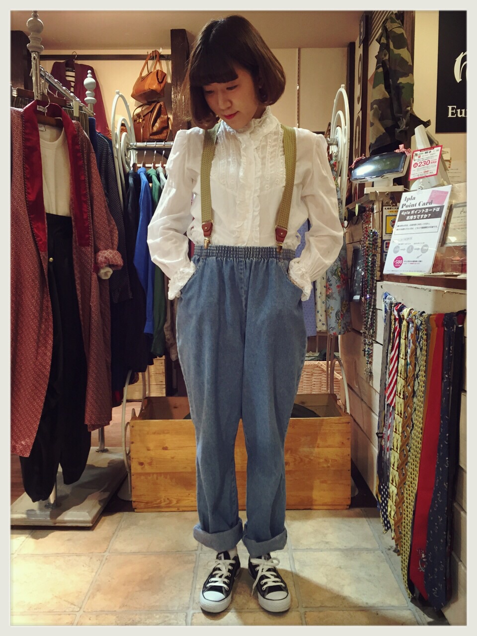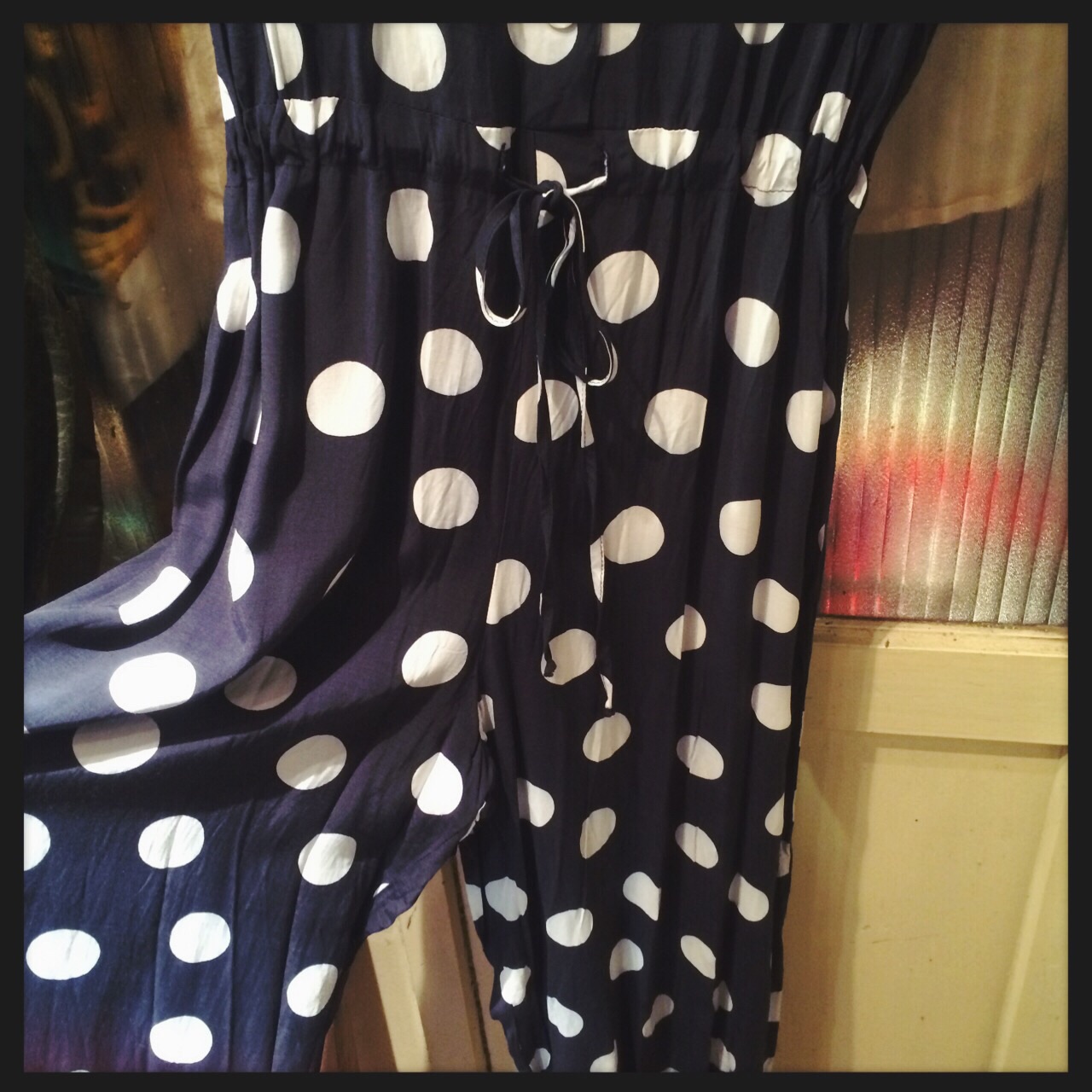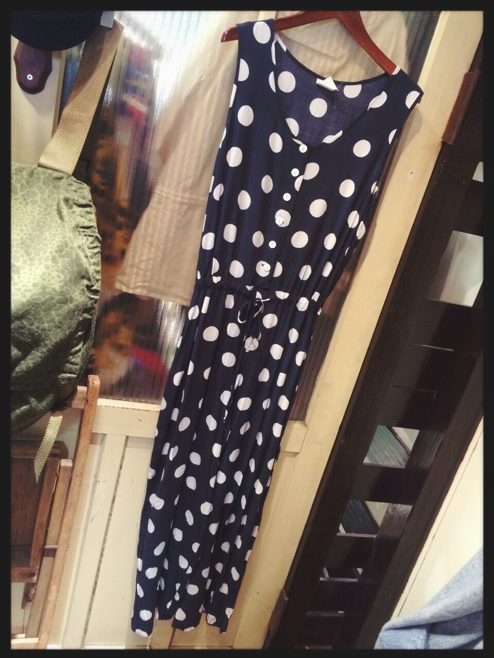 大きめドットが目を引く、コンビネゾン◎パンツなのでスカートが苦手な方も挑戦しやすいです^_^