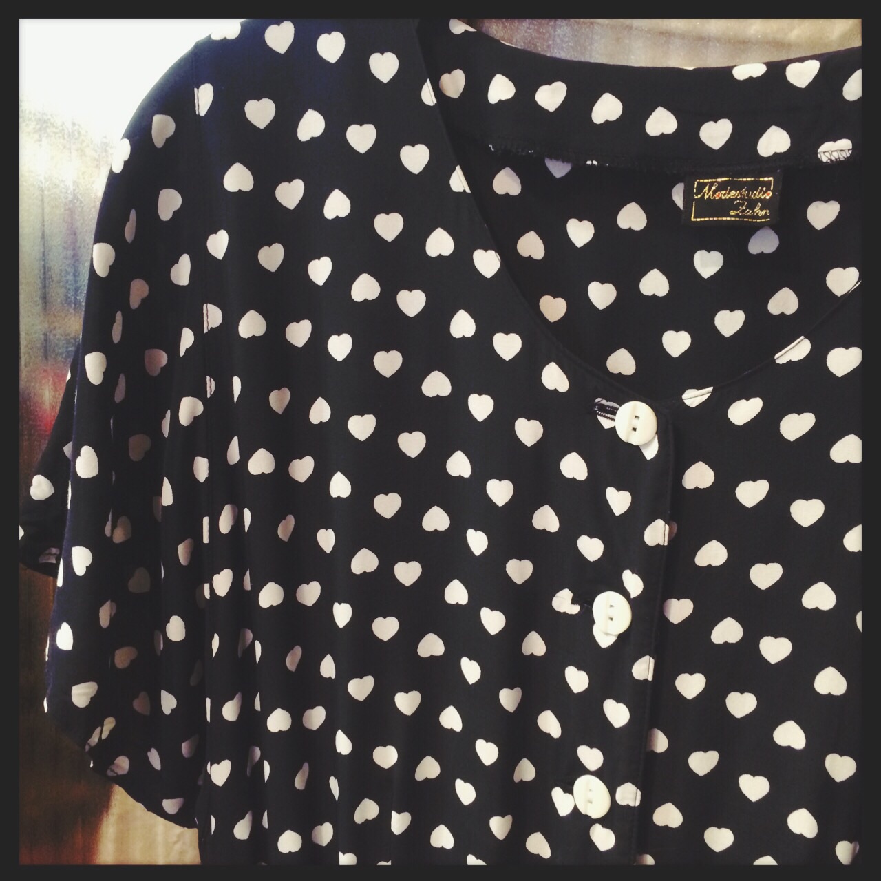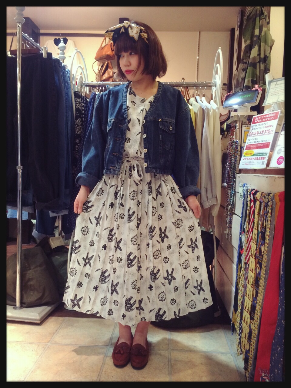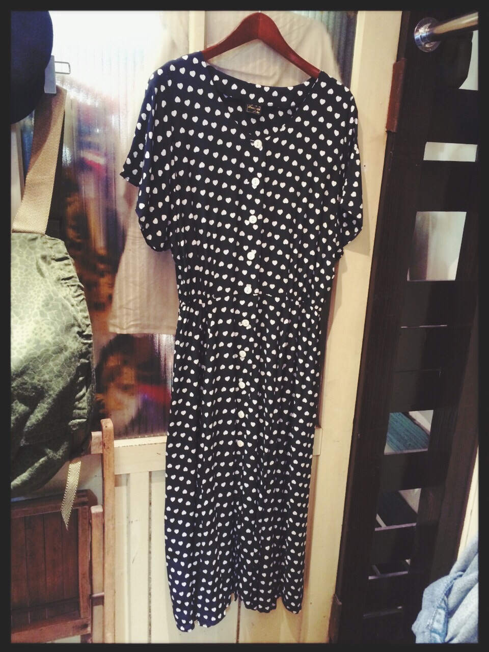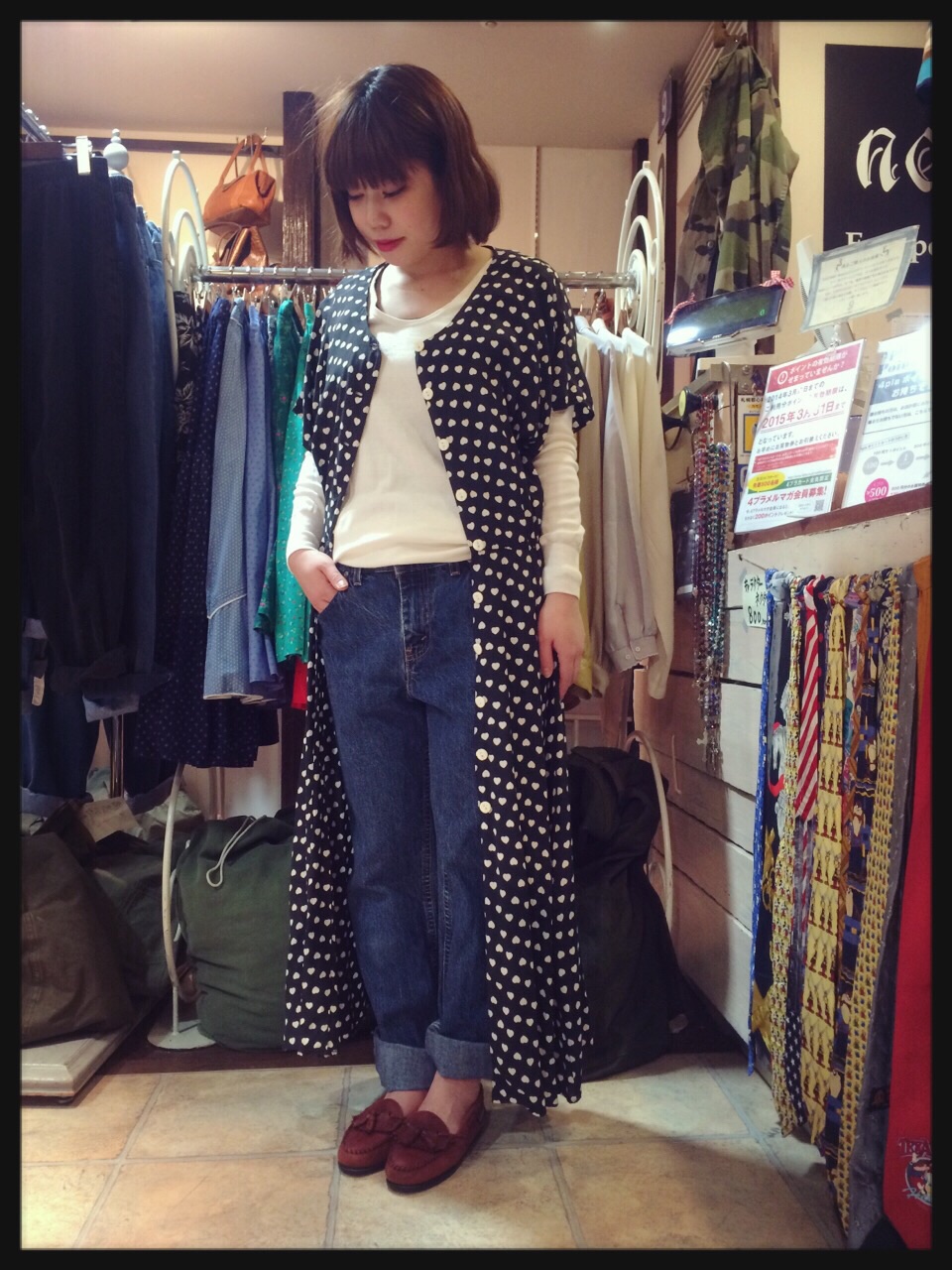 よく見るとハート柄のロングワンピ◎前開きなのでデニムと合わせて羽織にしても可愛いですよ^ ^