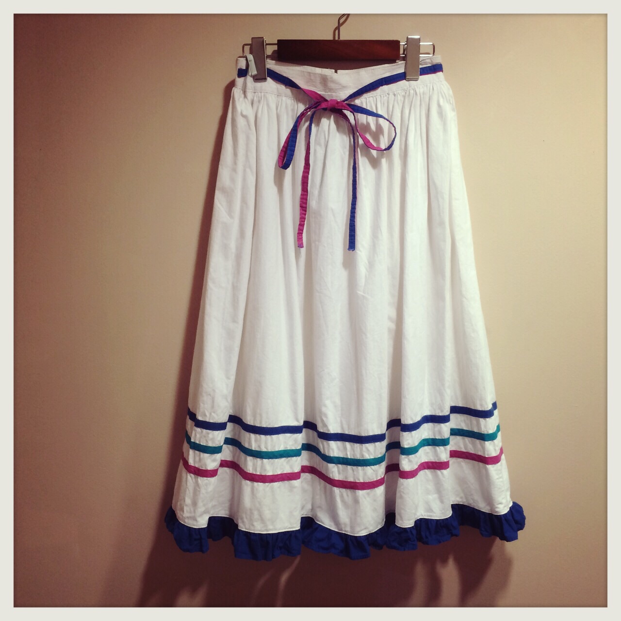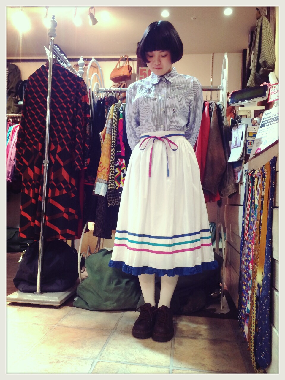 真っ白にライン入りのフレアスカート◎柄アイテムとも合わせやすい(^-^)