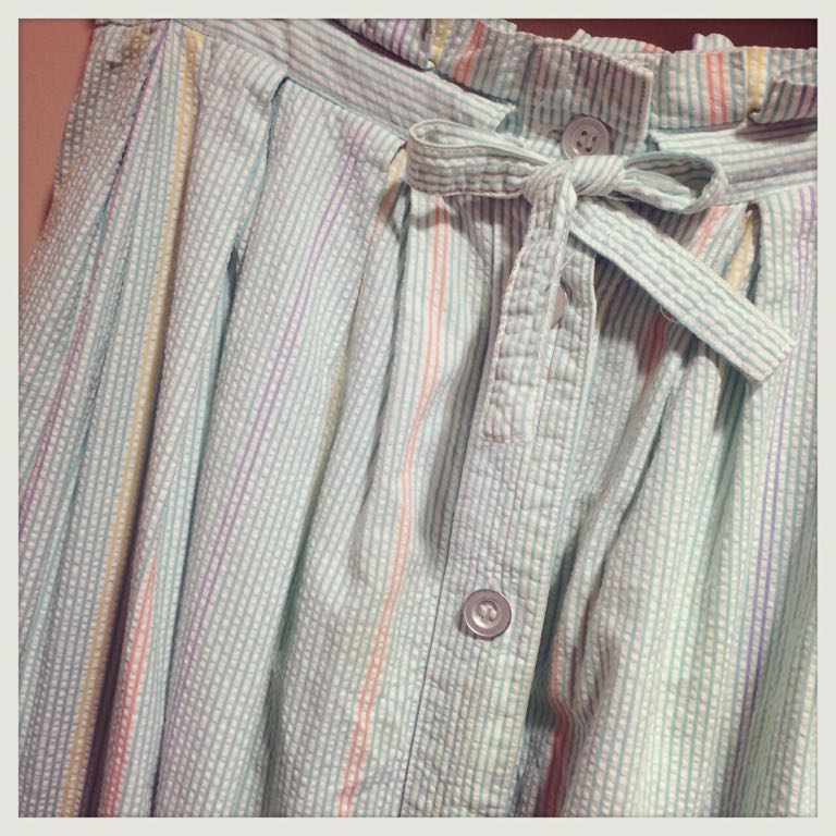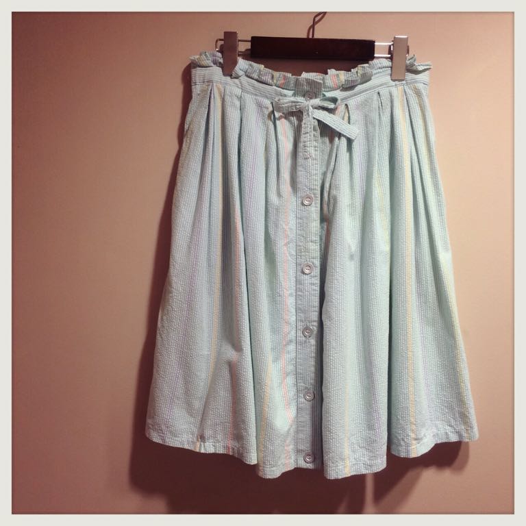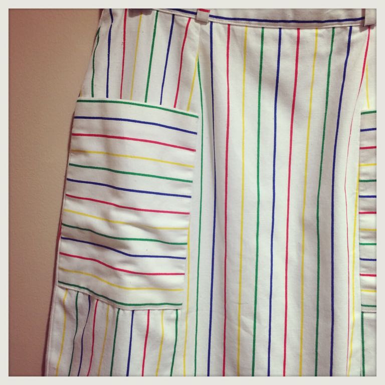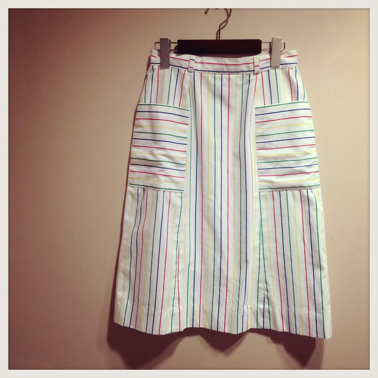白地にカラフルなストライプのスカート◎ポケットもかわいい♡