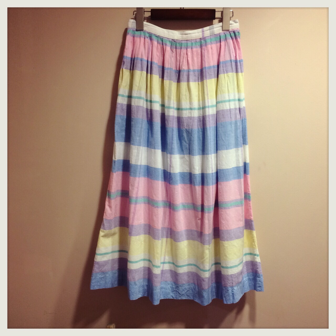 パステルカラーのストライプスカート◎ミリタリージャケットと合わせてワークmixに♪