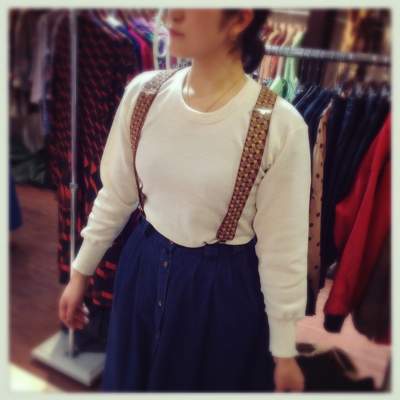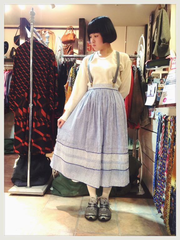 ギンガムチェックのギャザースカート◎サスペンダーをしてもかわいいですよ(^ν^)♪