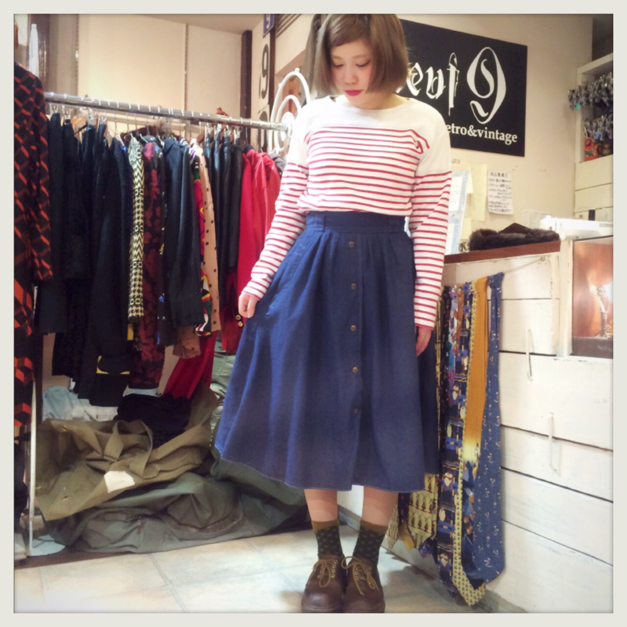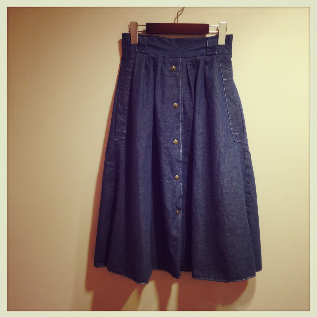 下までボタンのデニムスカート