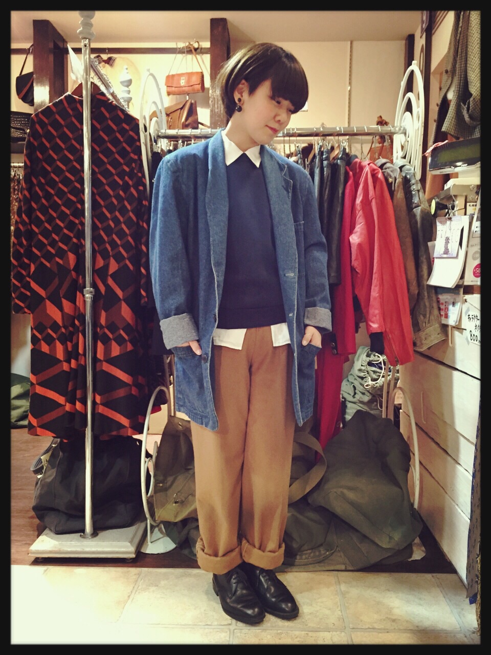 薄めの色なのでブラウスとサスペンダーで春っぽく(^-^)♪