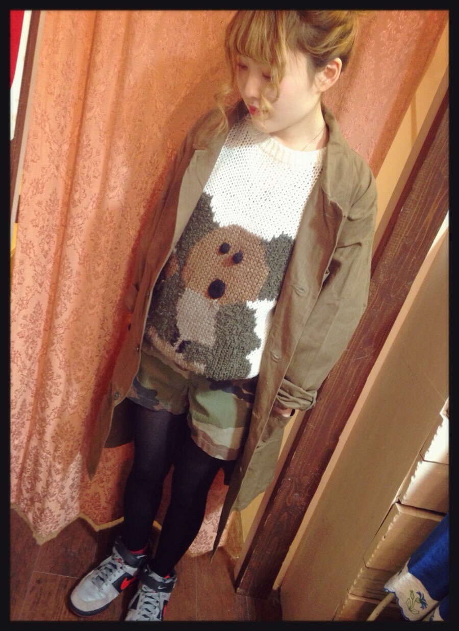 カーキの大人っぽいパンツはラルフのゆったりスウェットをインしてゆるめなコーデに♪