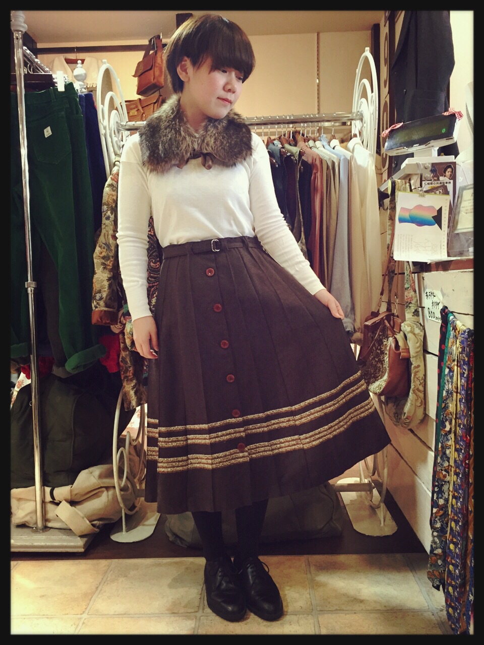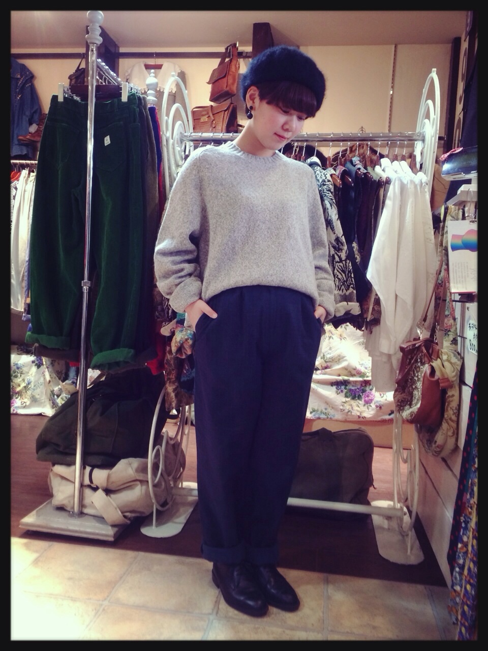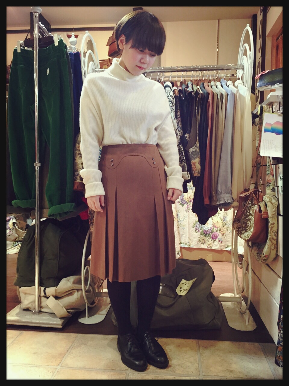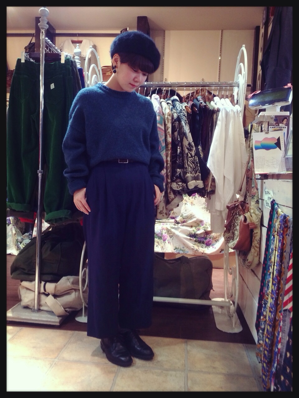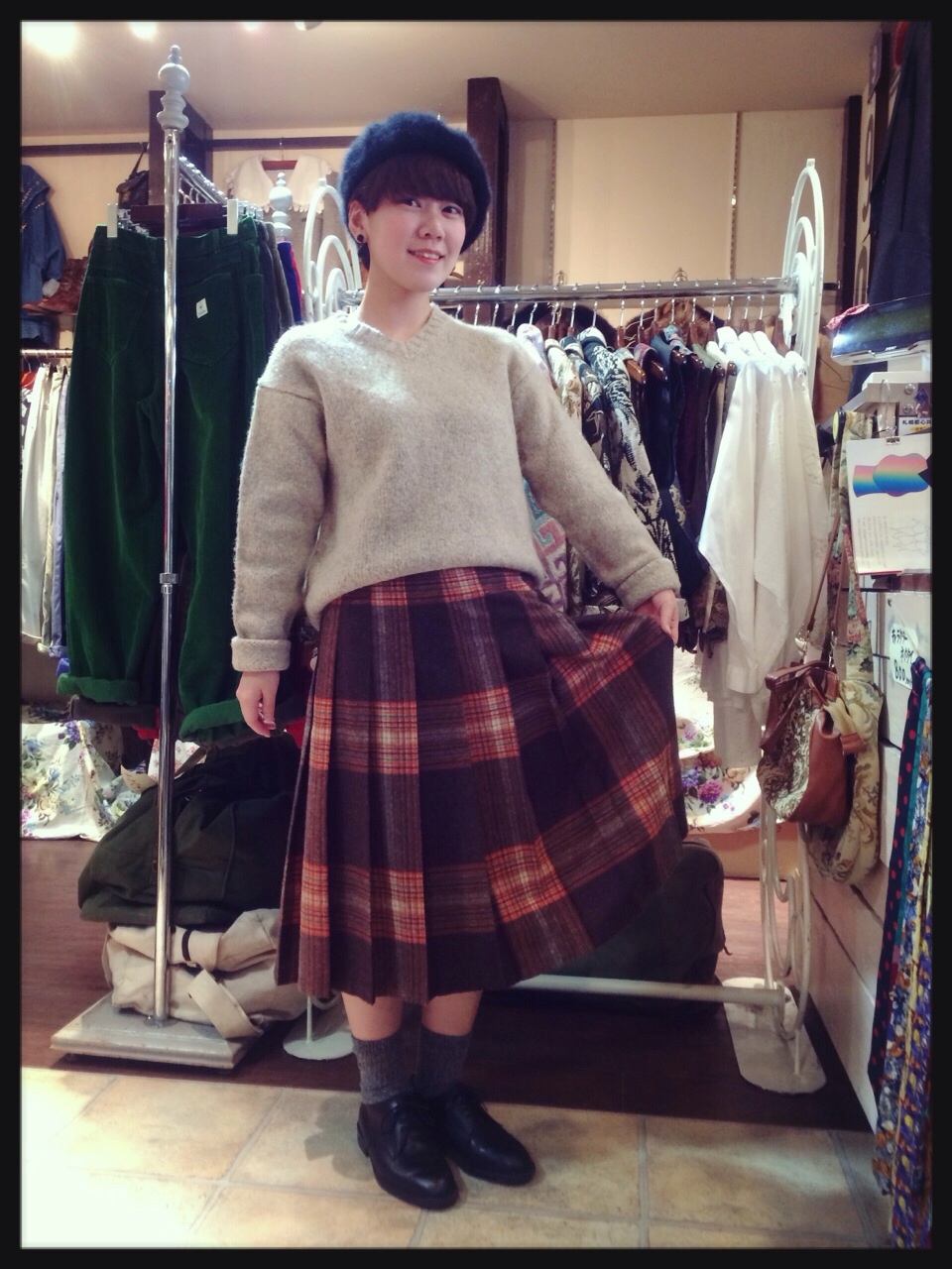 柄ものスカート、パンツにも抜群に合わせやすい無地ニットは一枚持ってると着回しがききますよ(^-^)♪