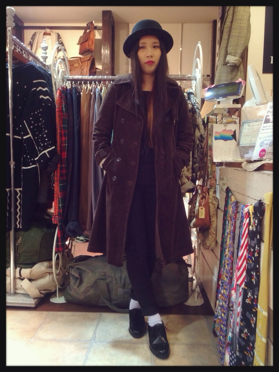 茶色のコーデュロイコート◎