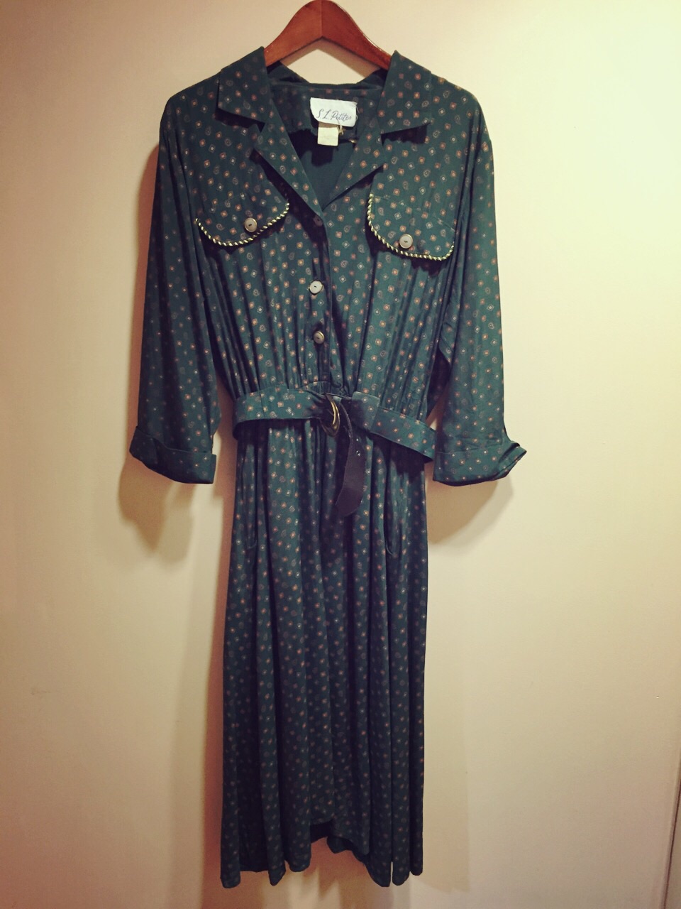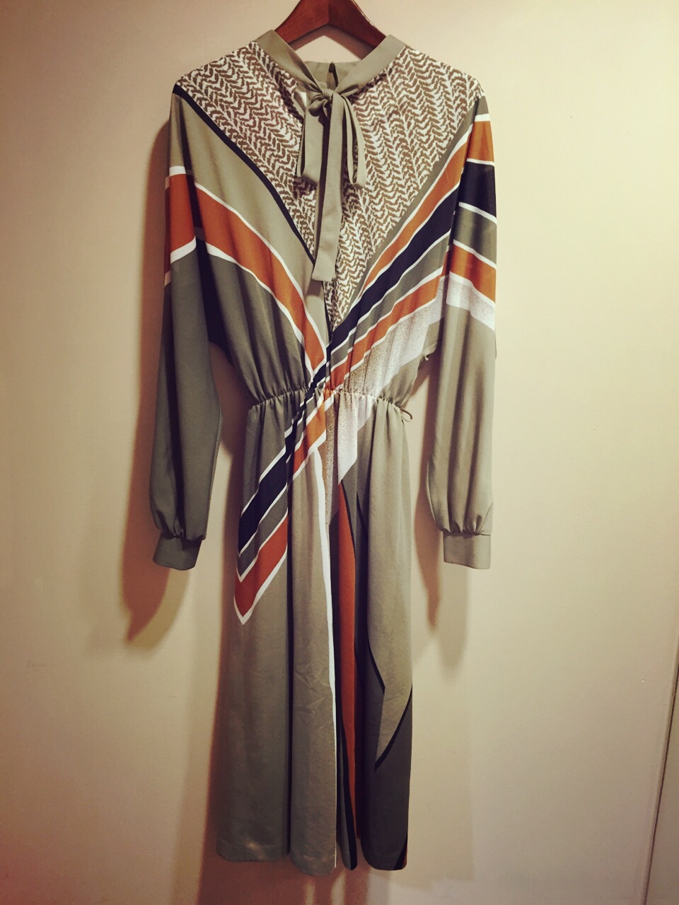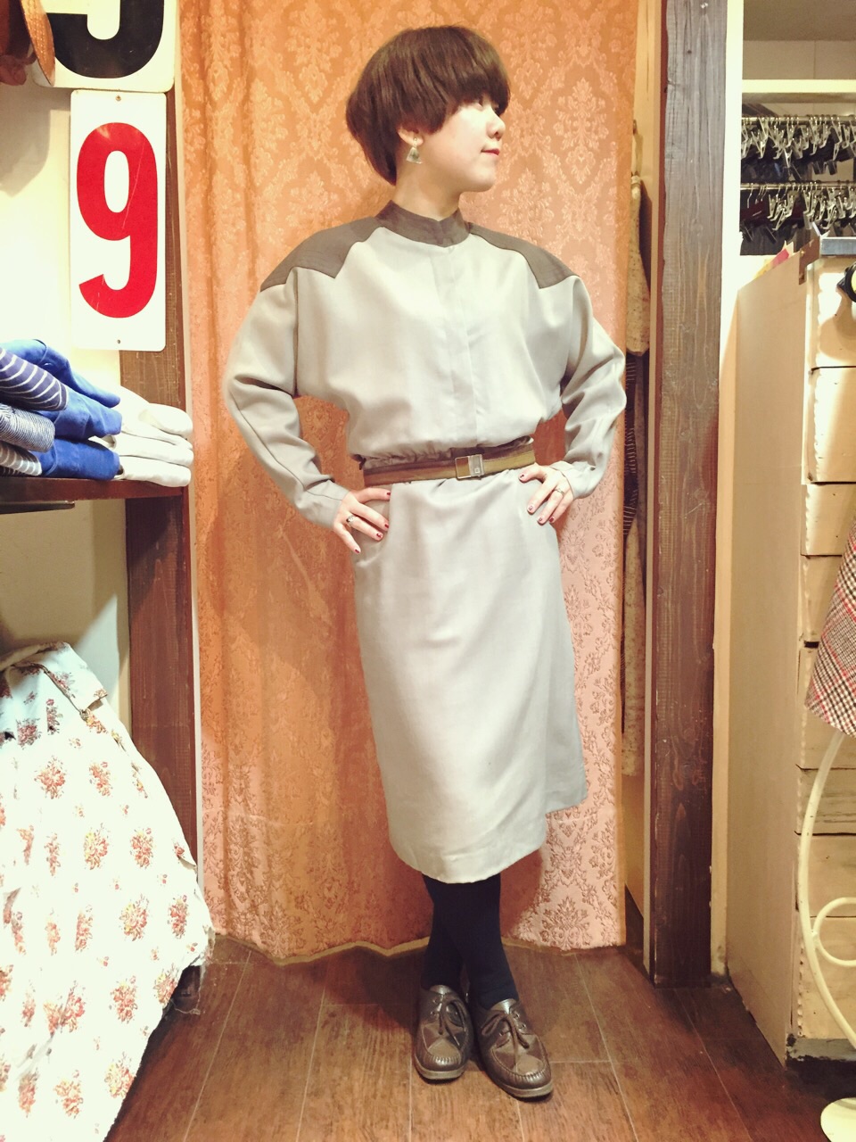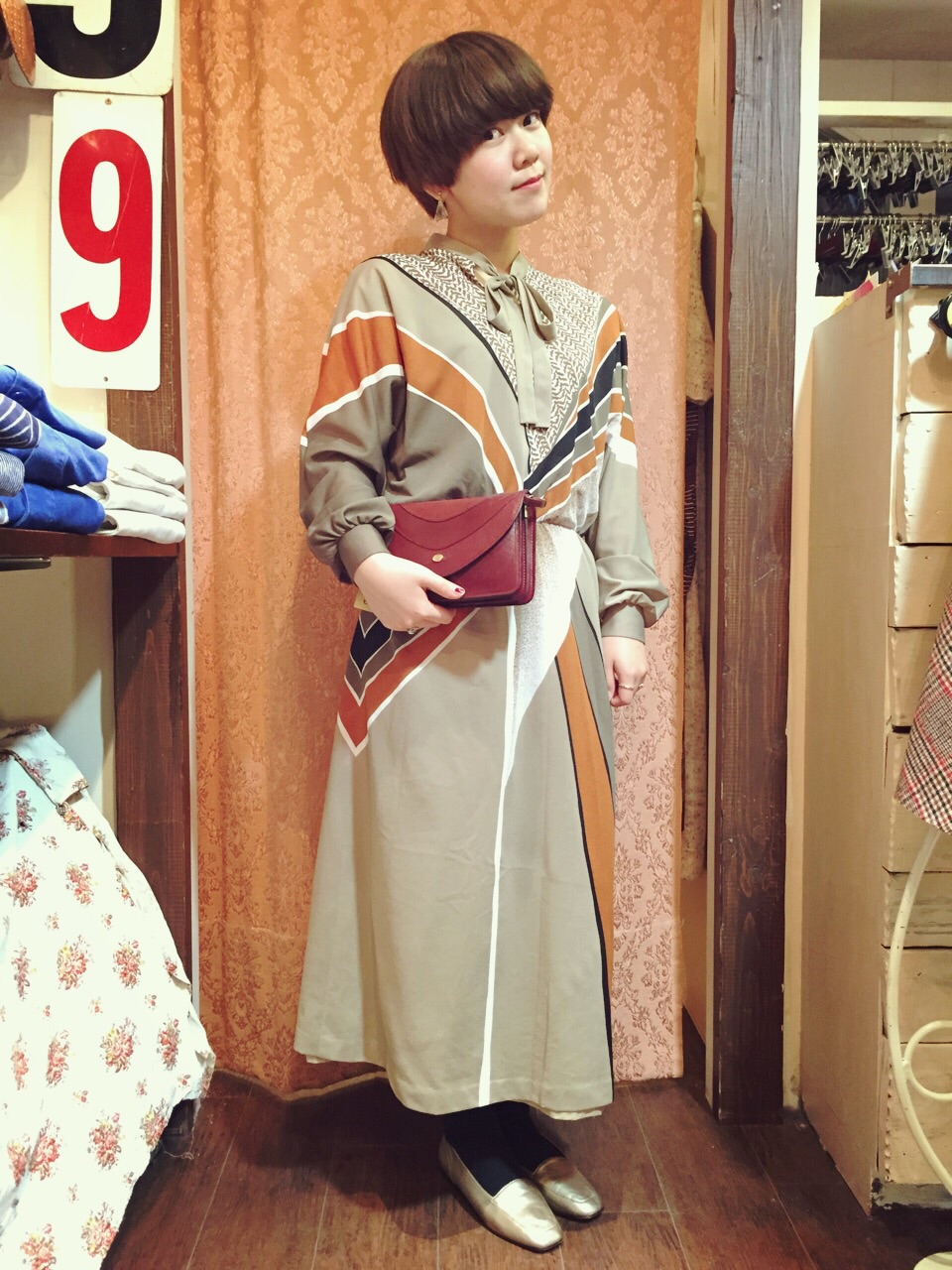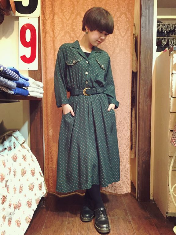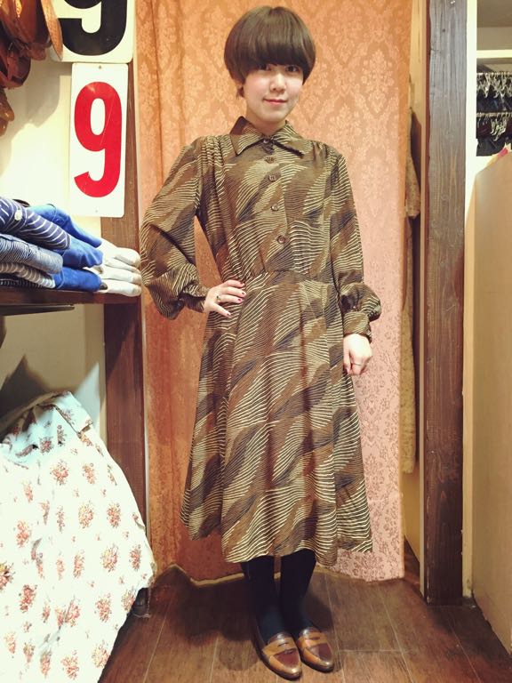 レトロな柄のワンピース。