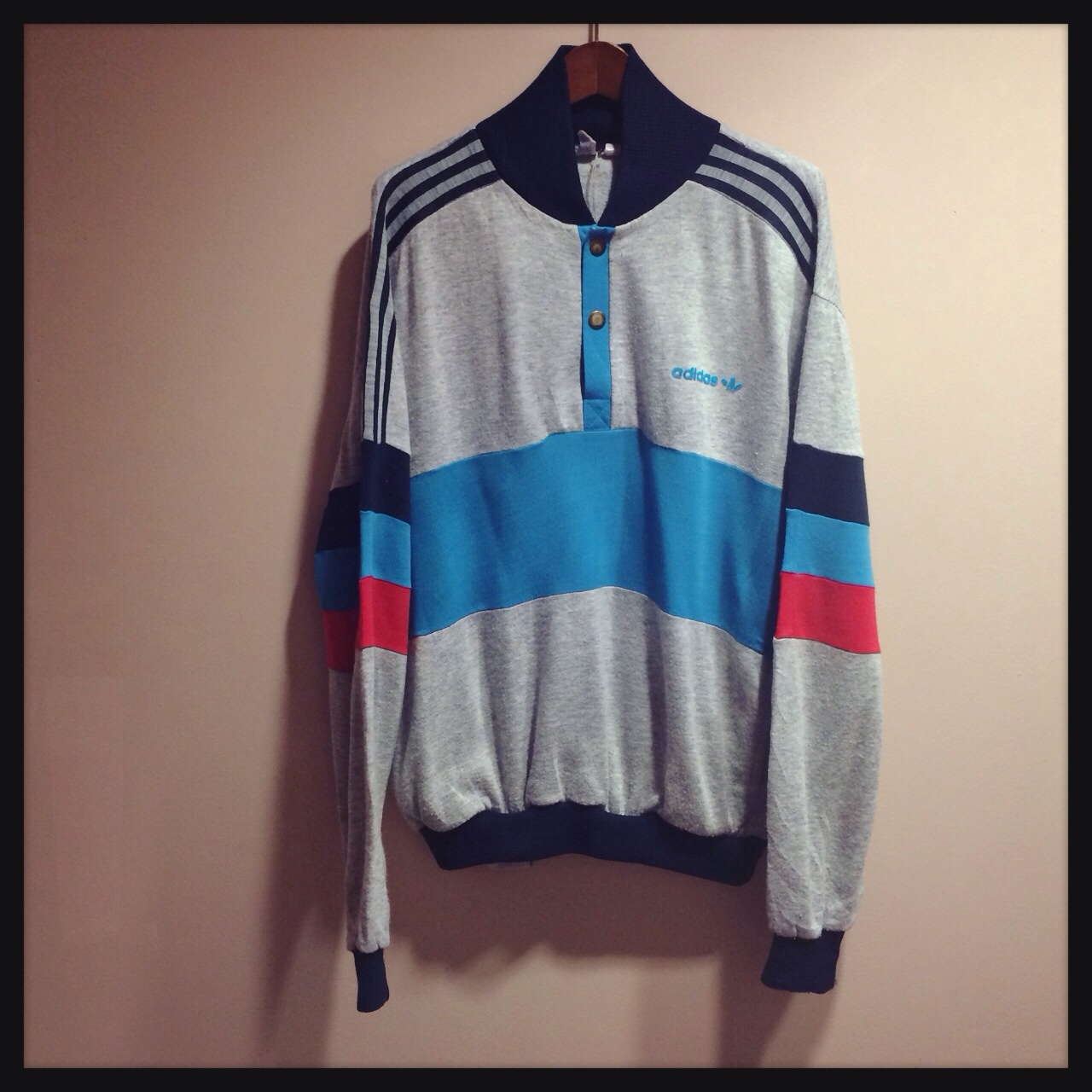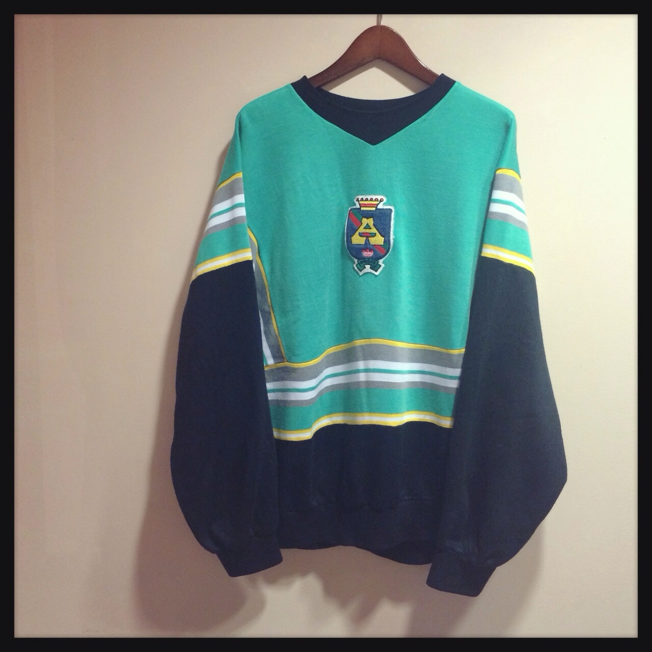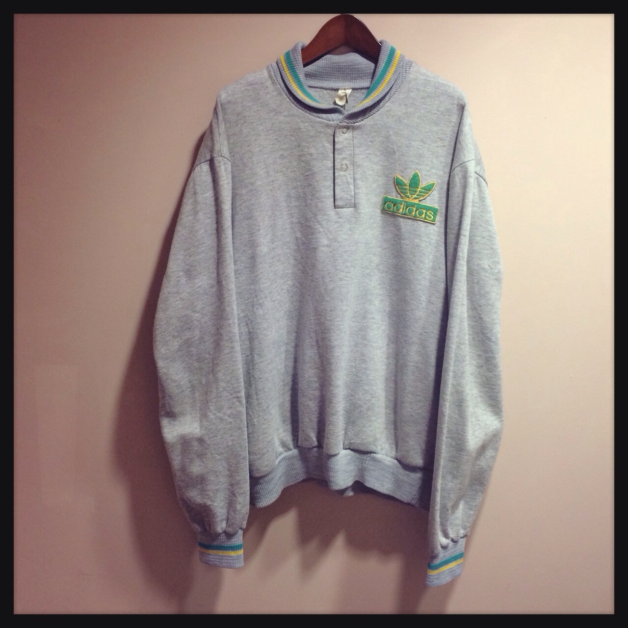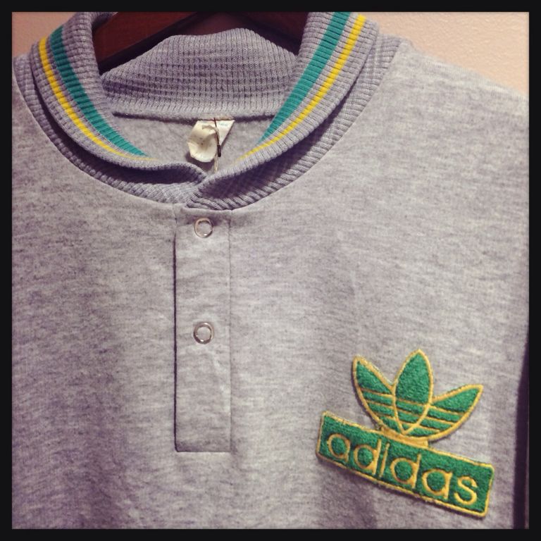 グレー地に緑と黄色のラインがめずらしいadidasスウェット◎