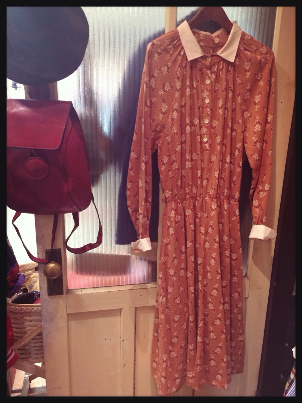 白襟が可愛いオレンジ花柄ワンピ