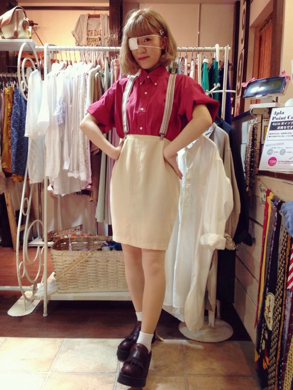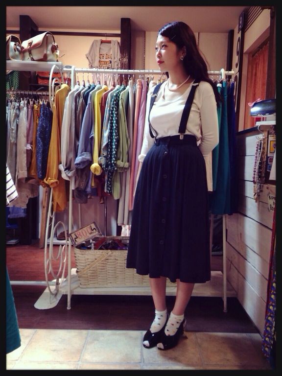 スカートにサスペンダーをプラスした、大人ガーリーコーデに♪