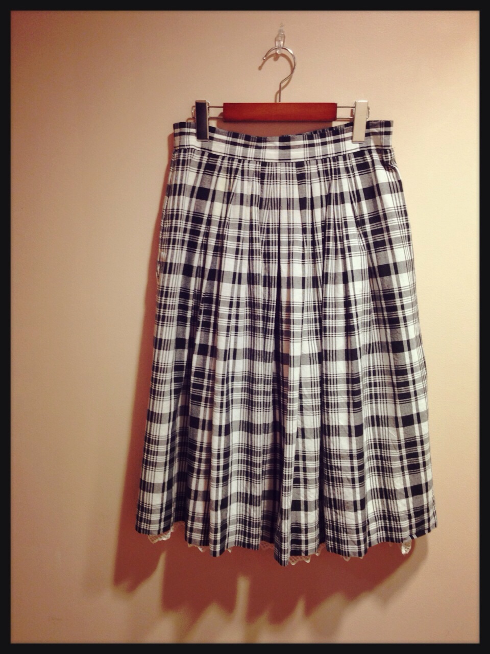 ギンガムチェックにシンプルなTシャツを合わせてカジュアルコーデに♪