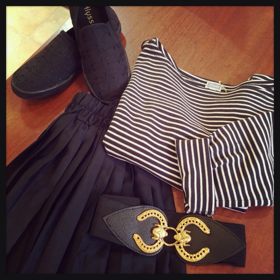 シンプルにボーダーとブラックでまとめたコーデ(^_^)